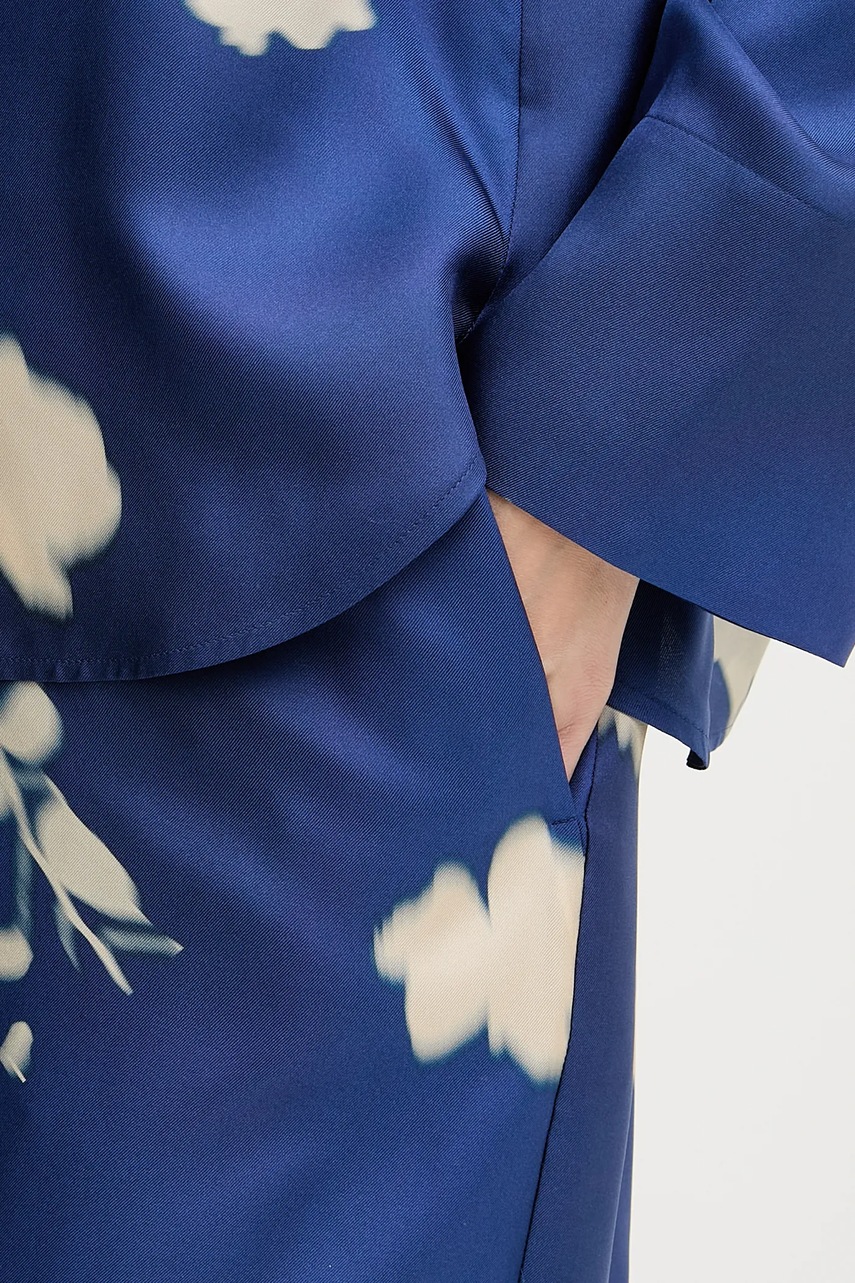 MM spodnie jedwabne HELGA damskie kolor niebieski szerokie high waist 2526136037600