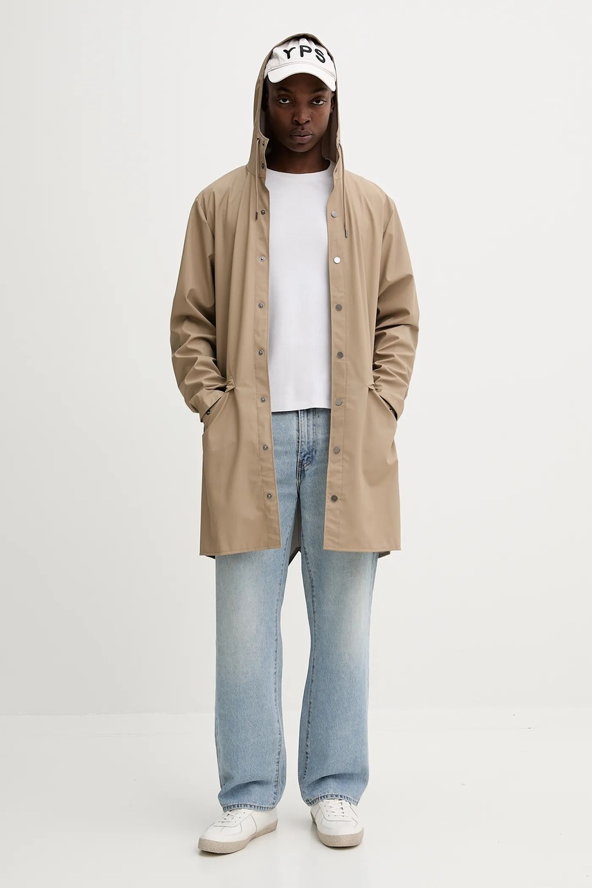 Rains kurtka 12020 Long Jacket kolor beżowy przejściowa 12020