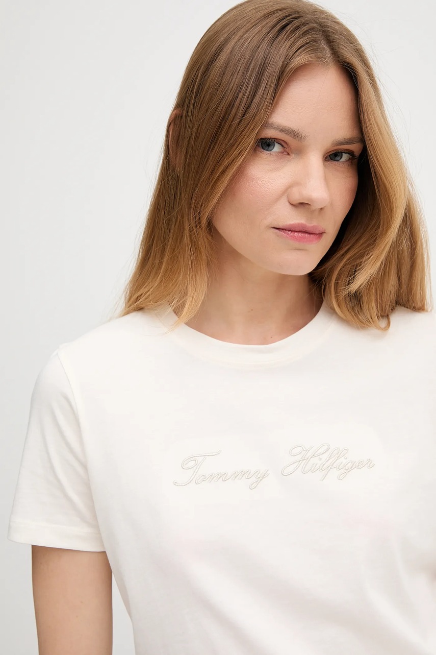 Tommy Hilfiger t-shirt bawełniany damski kolor beżowy WW0WW47210