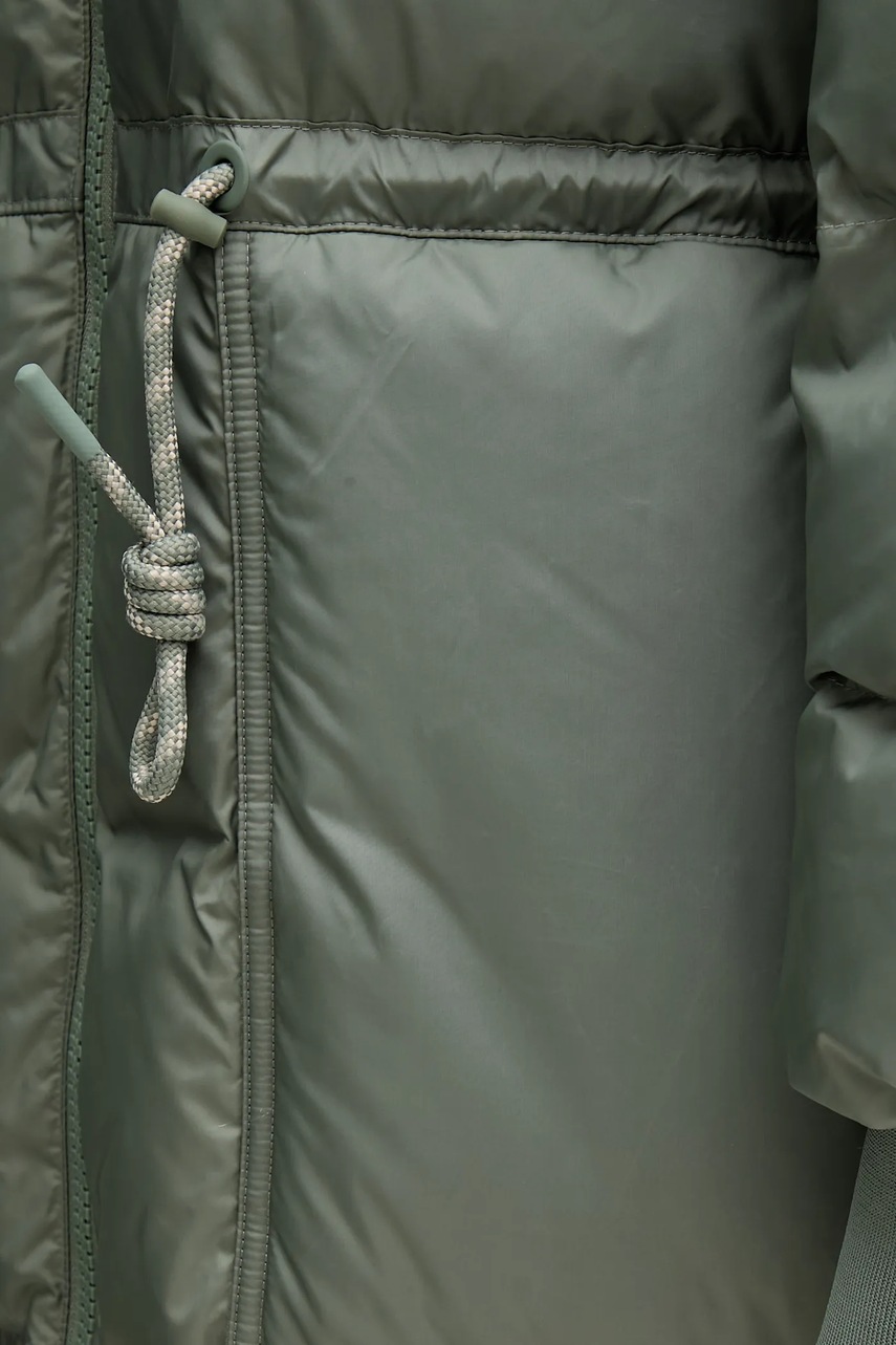 - Odpinany kaptur, regulowany za pomocą troczków ze stoperami, zwiększa ochronę przed wiatrem i deszczem.