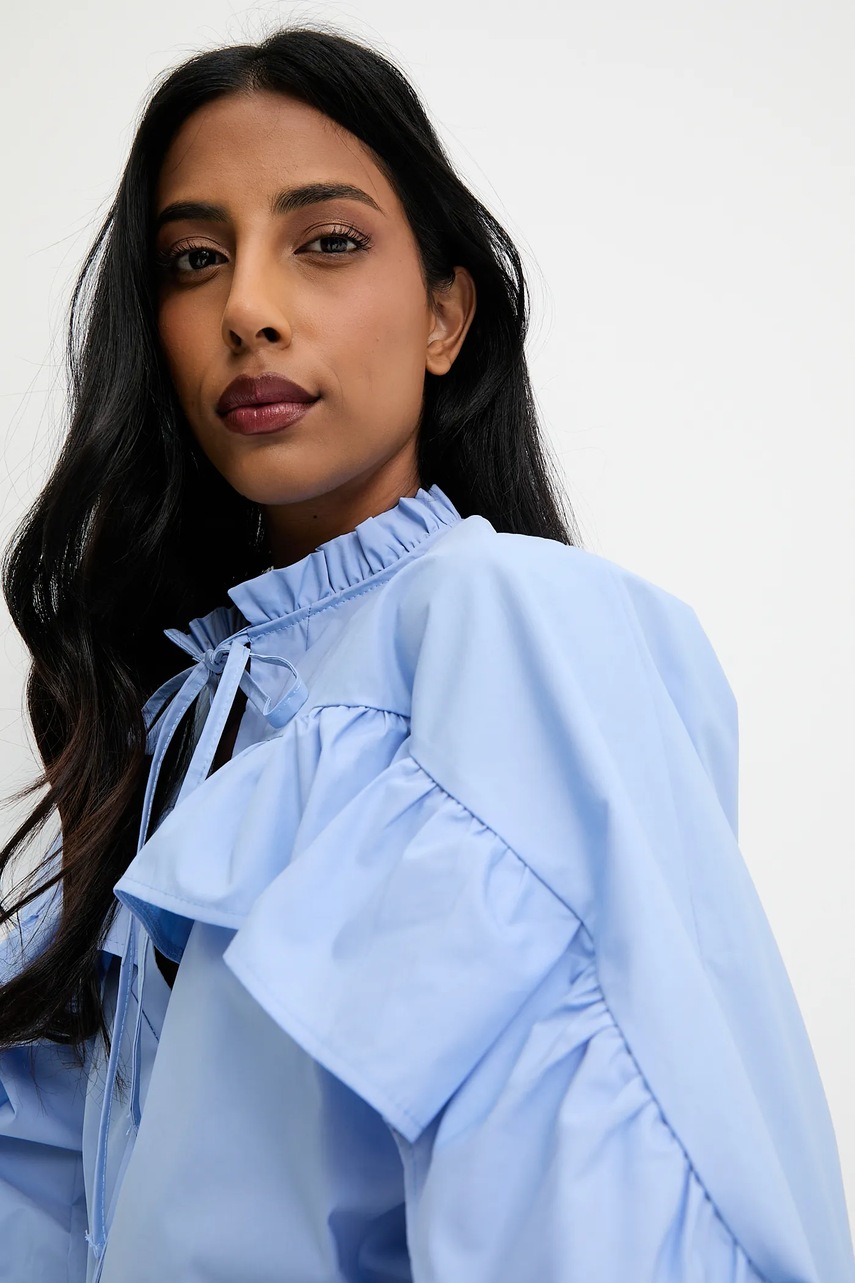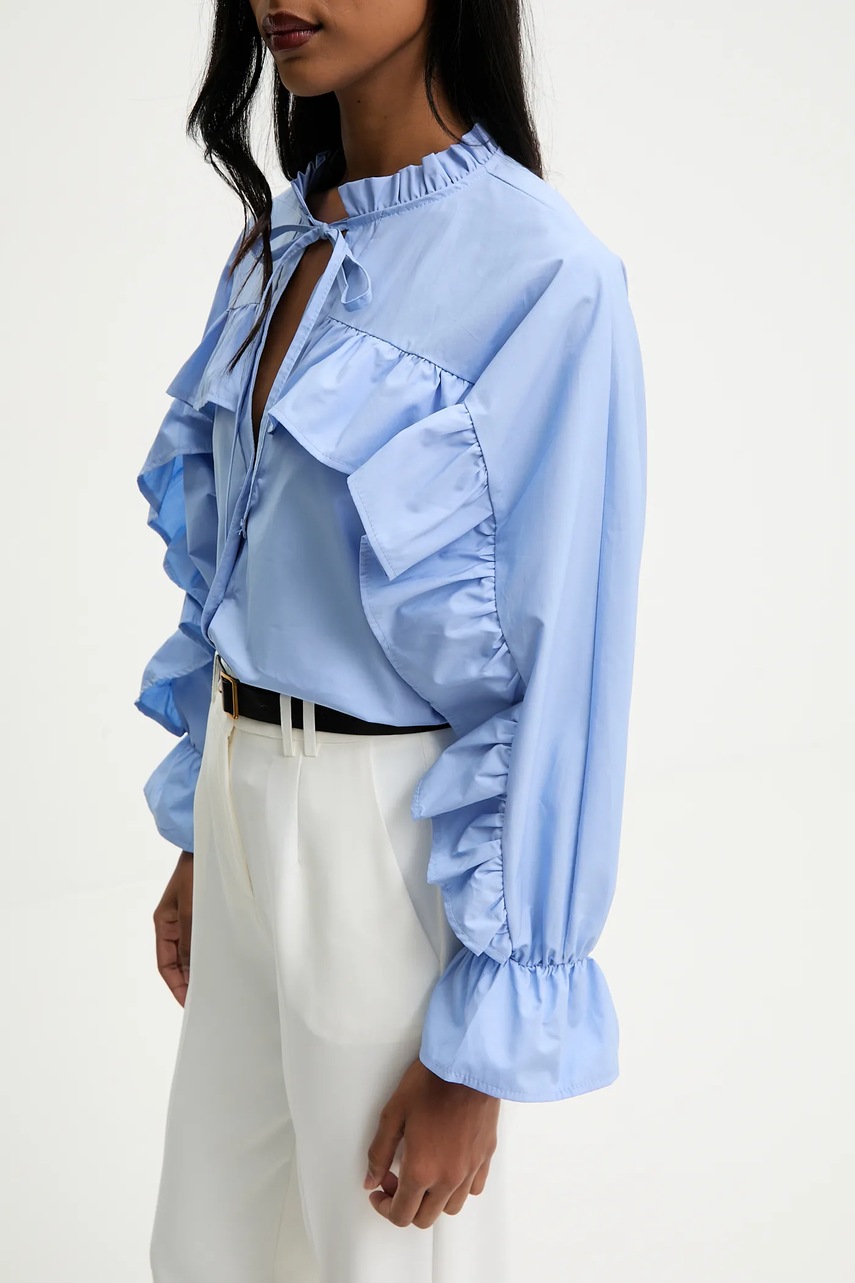 Answear.LAB koszula damska kolor niebieski relaxed z wiązanym dekoltem