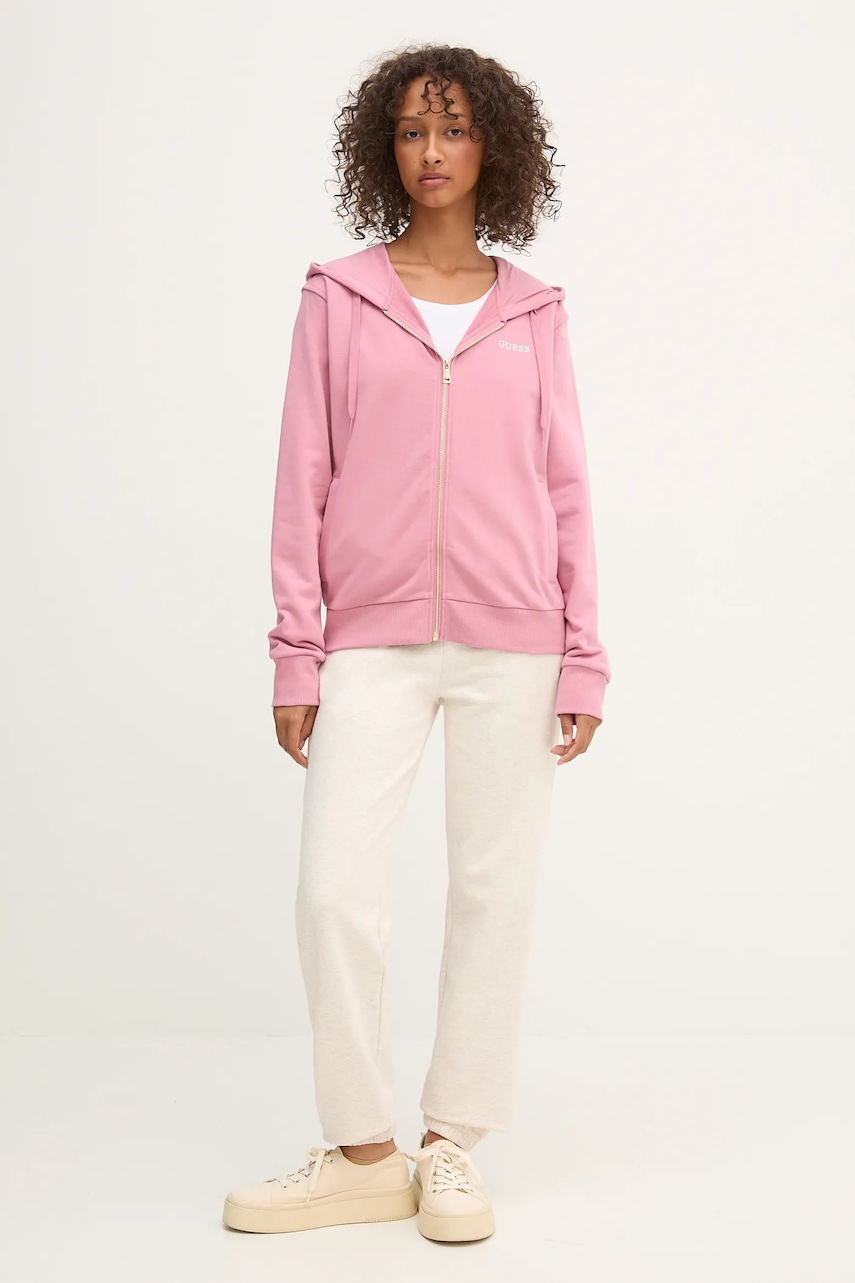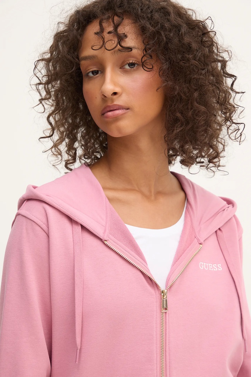 Guess bluza SOFIA damska kolor różowy z kapturem gładka O5RQ01 KCO31