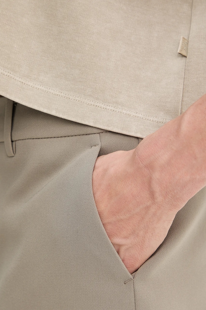 - Model z regularną talią i zapięciem na suwak, guzik i haftki.