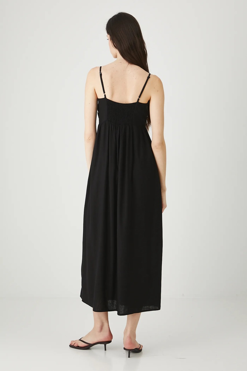 Medicine sukienka z domieszką lnu kolor czarny maxi rozkloszowana