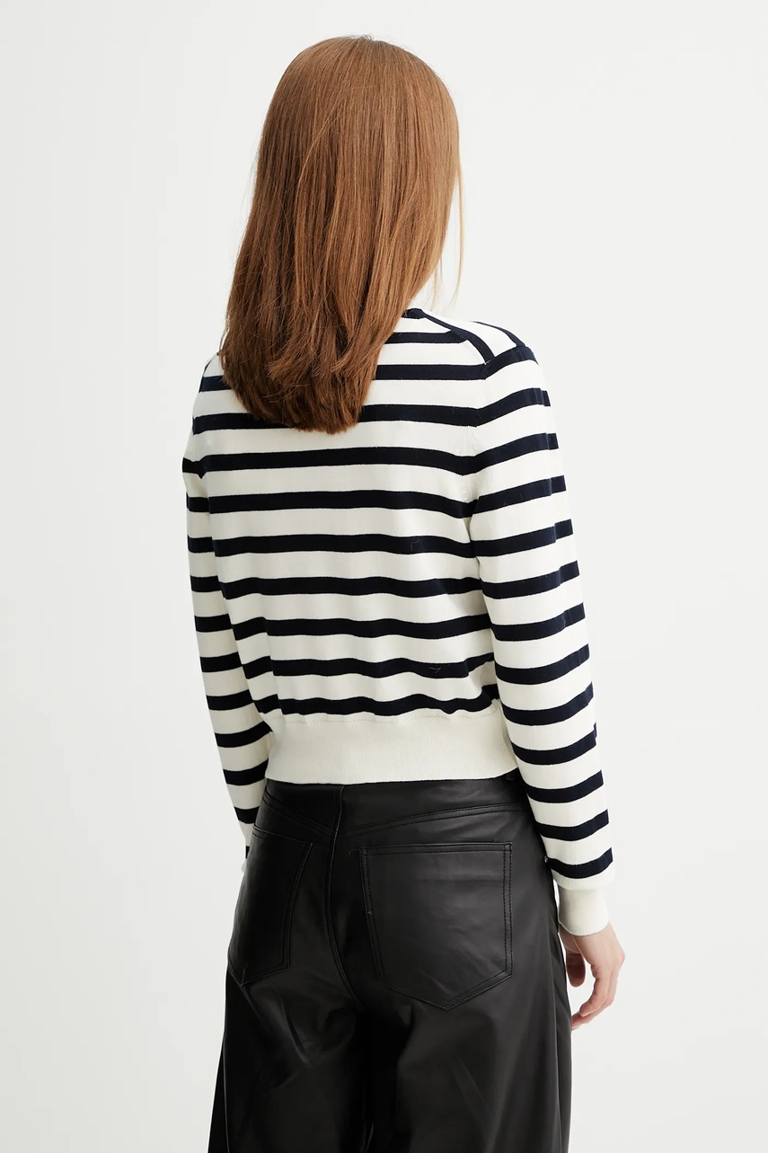 - Sweter w fasonie regular zapewnia wygodę i uniwersalny wygląd. Delikatnie dopasowuje się do sylwetki, ale nie podkreśla jej nadmiernie. Klasyczny i prosty, sprawdzi się zarówno w eleganckich, jak i casualowych stylizacjach.
