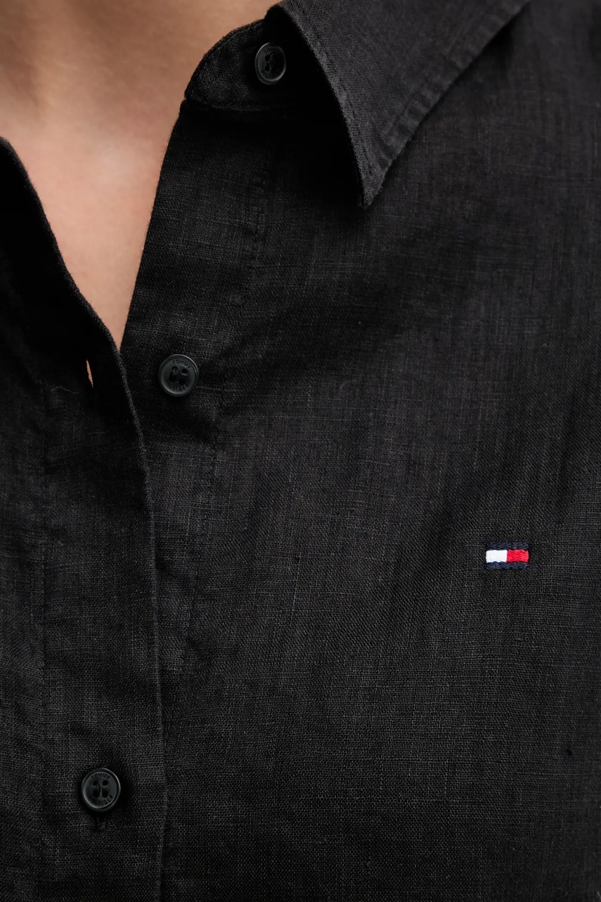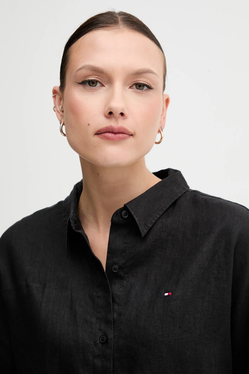 Tommy Hilfiger koszula lniana damska kolor czarny relaxed z kołnierzykiem klasycznym WW0WW46169