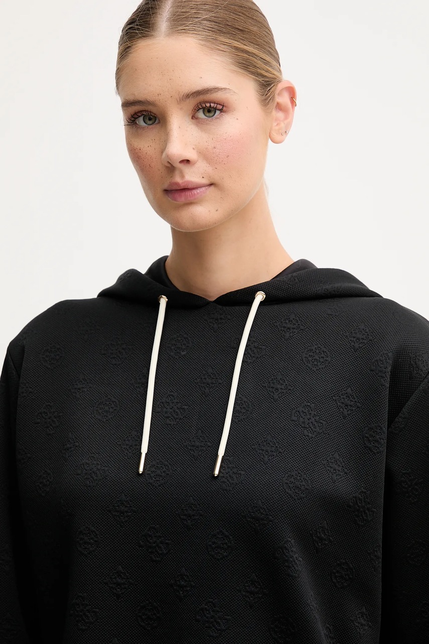 Guess bluza PEONY damska kolor czarny z kapturem gładka V5YQ04 KBSL2