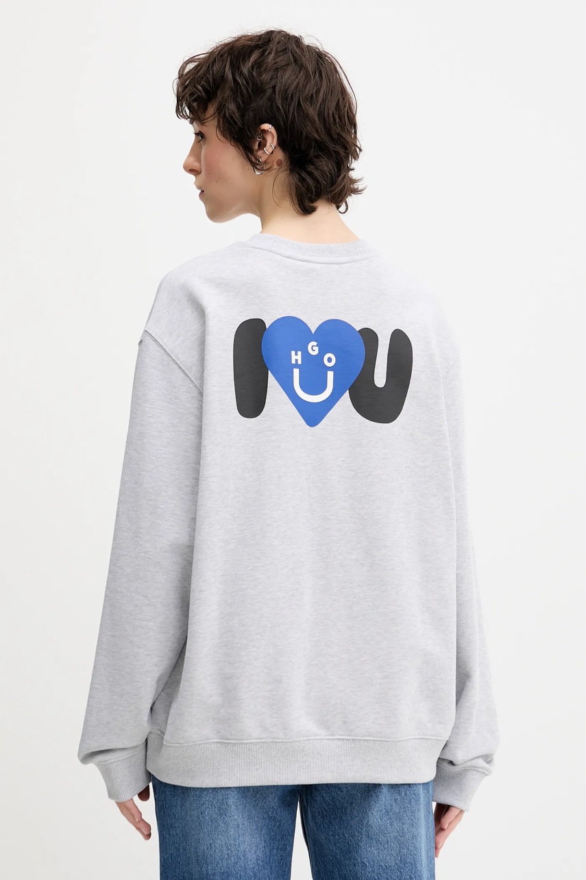 Hugo Blue bluza bawełniana damska kolor szary z nadrukiem 50545052