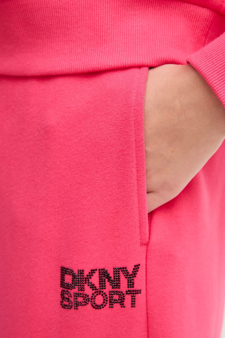 Dkny spodnie dresowe bawełniane damskie kolor różowy z aplikacją DP5P3650