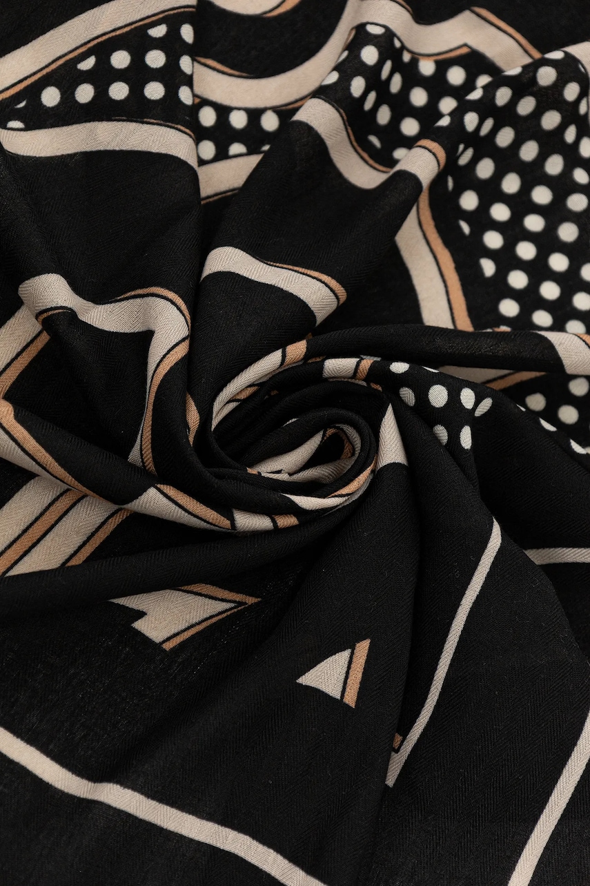 BOSS szalik z domieszką wełny kolor czarny wzorzysty
