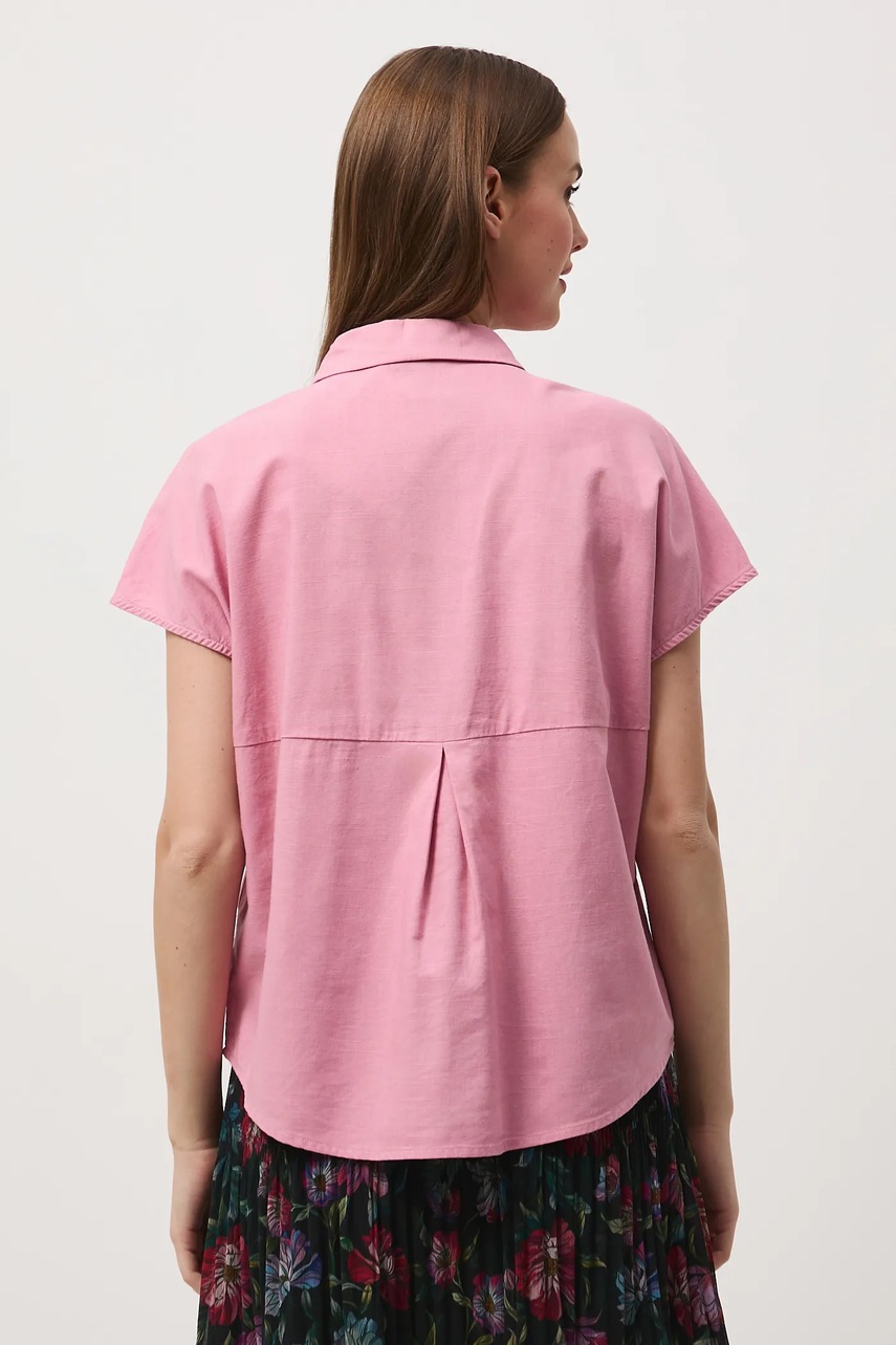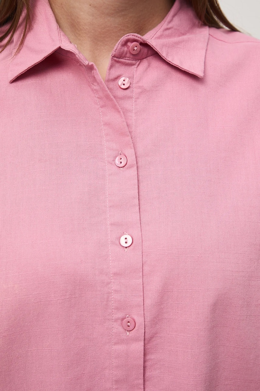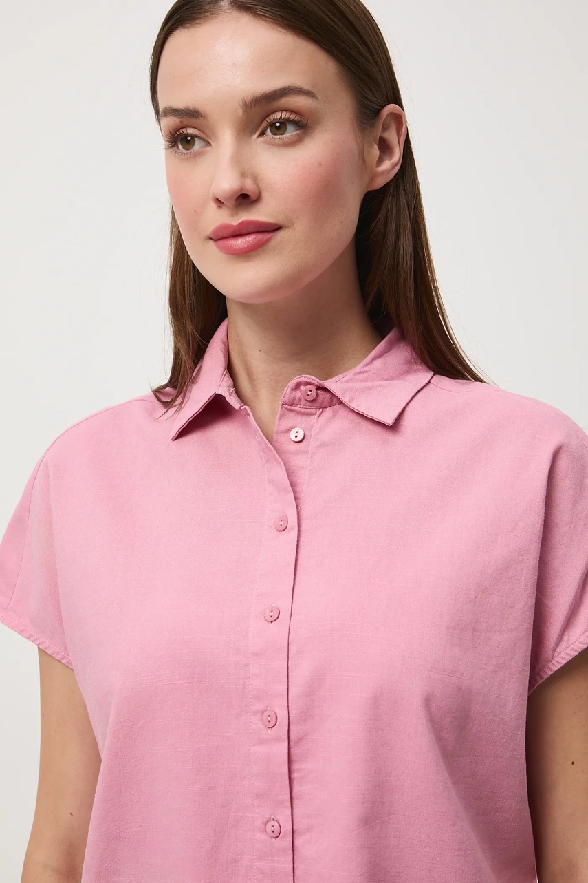 Medicine koszula z domieszką lnu damska kolor różowy relaxed z kołnierzykiem klasycznym