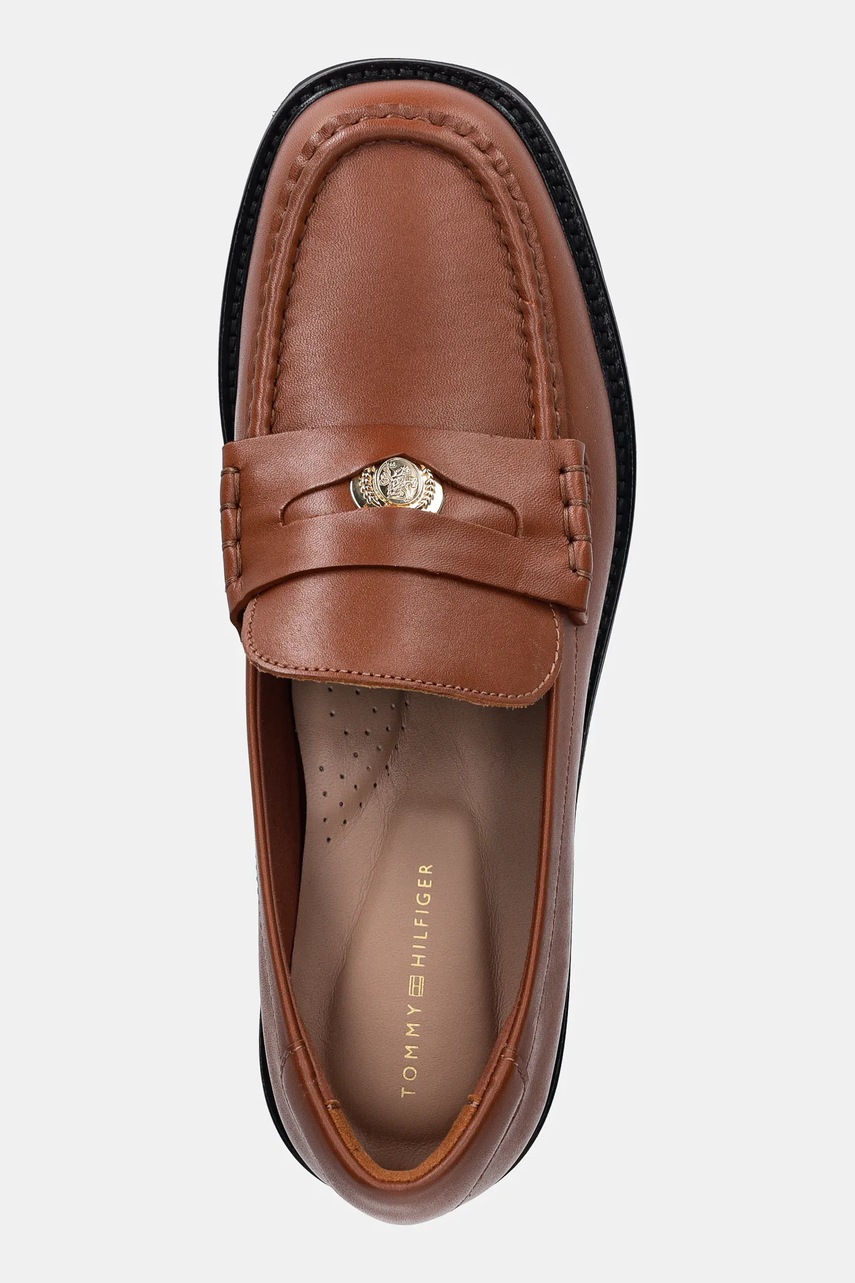 Tommy Hilfiger mokasyny skórzane CREST SQUARISH TOE PENNY LOAFER damskie kolor brązowy na płaskim obcasie FW0FW08633