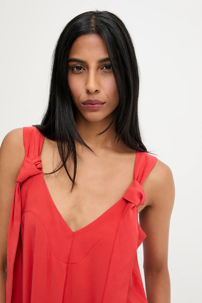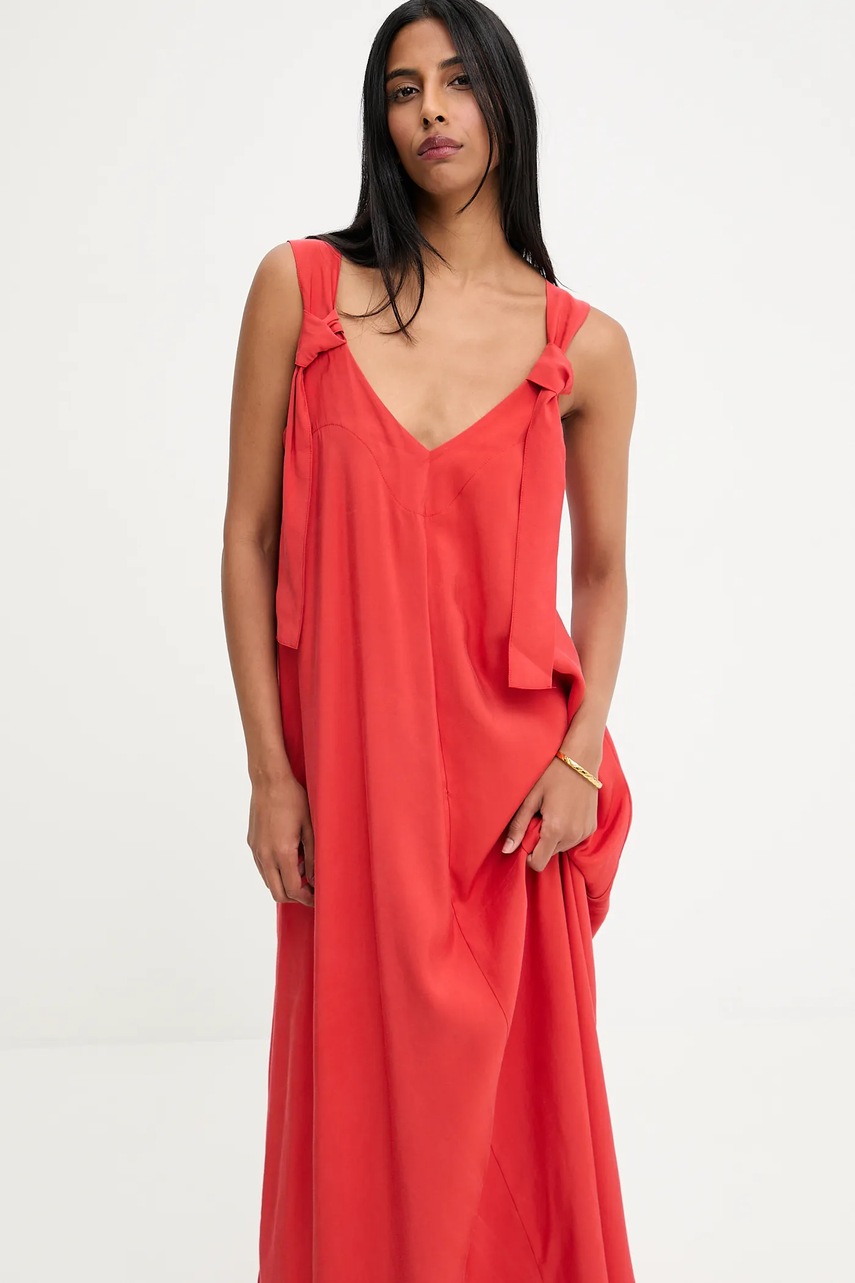 Answear.LAB sukienka kolor czerwony maxi rozkloszowana