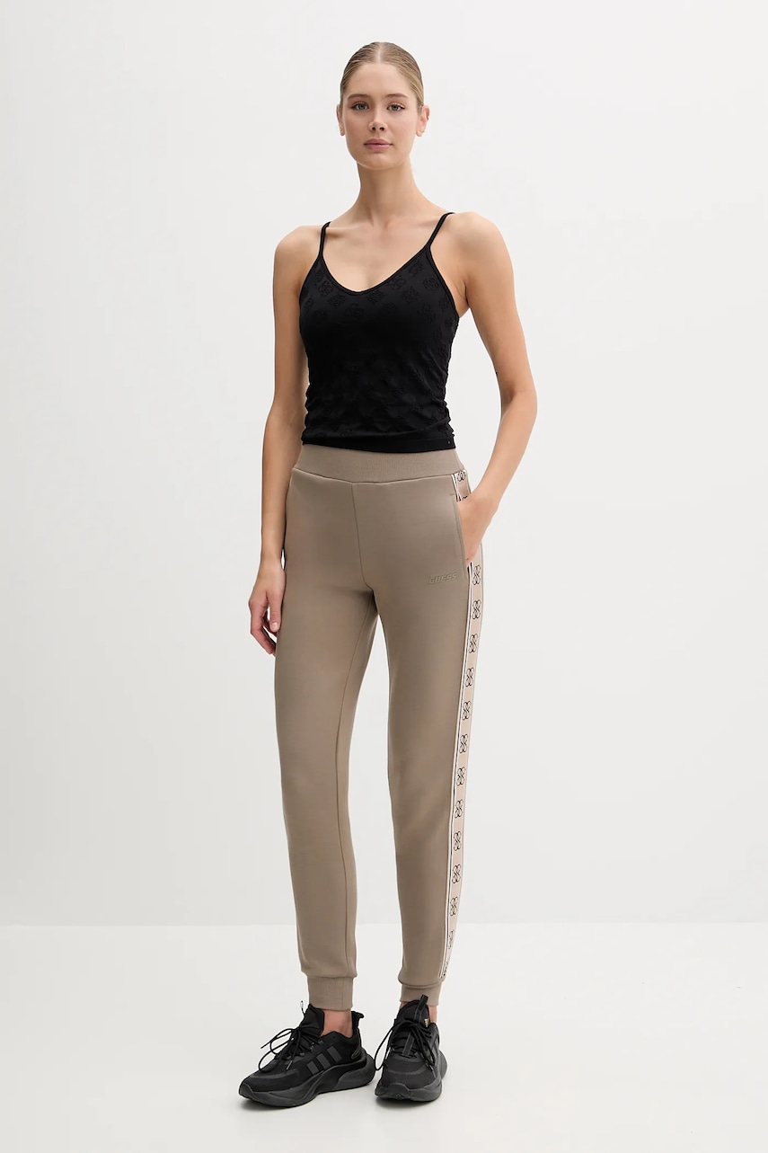 Guess spodnie dresowe BRITNEY kolor beżowy z aplikacją V2YB15 KB3P2