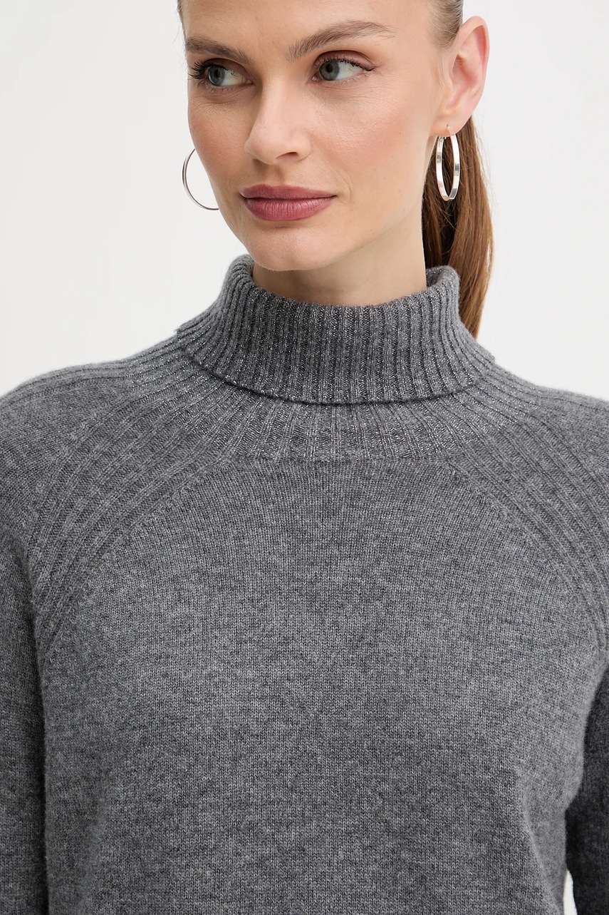 Twinset sweter wełniany damski kolor szary z golfem 252TP3582
