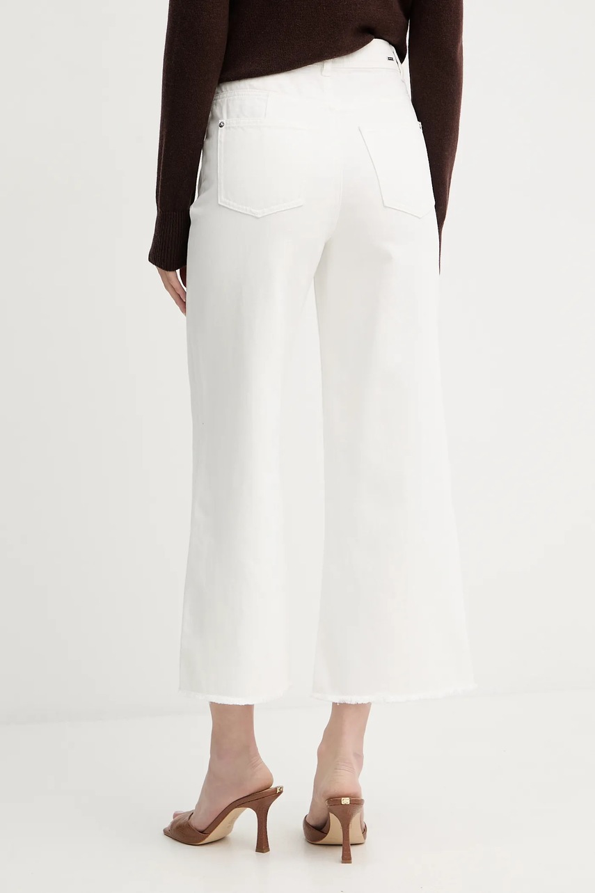 - Fason wide leg - jeansy lekko dopasowane w okolicy bioder z charakterystyczną szeroką nogawką, która stopniowo poszerza się od talii, aż do samego dołu. Krój akcentuje wcięcie w talii, a luźny dół nie krępuje ruchów.