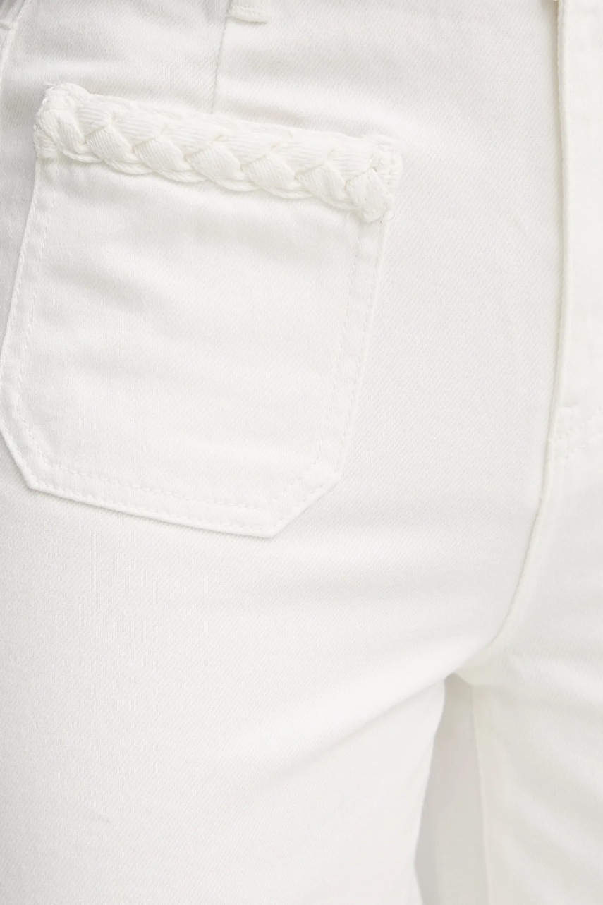 - Model z podwyższoną talią i zapięciem na guzik i suwak.