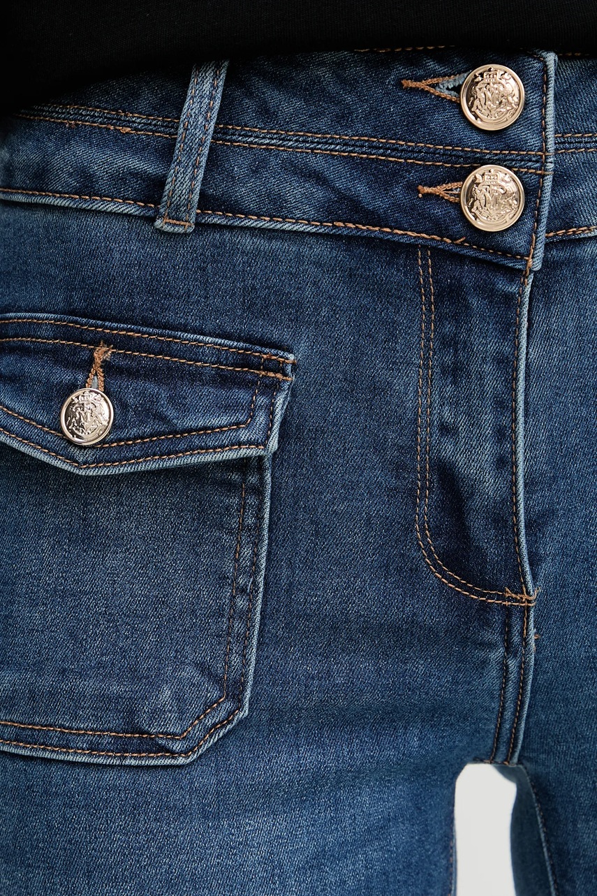 - Model z regularną talią i zapięciem na suwak i guziki.