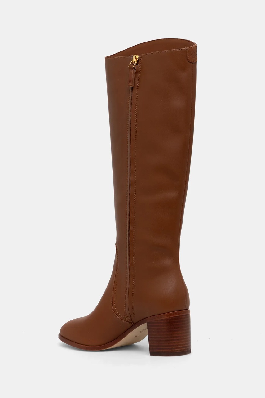 Lauren Ralph Lauren kozaki skórzane Charly damskie kolor brązowy na słupku 802974388001