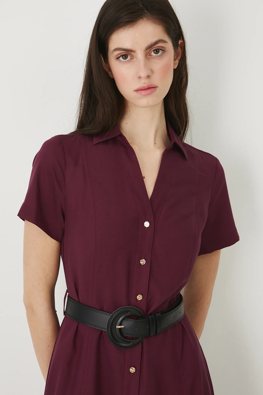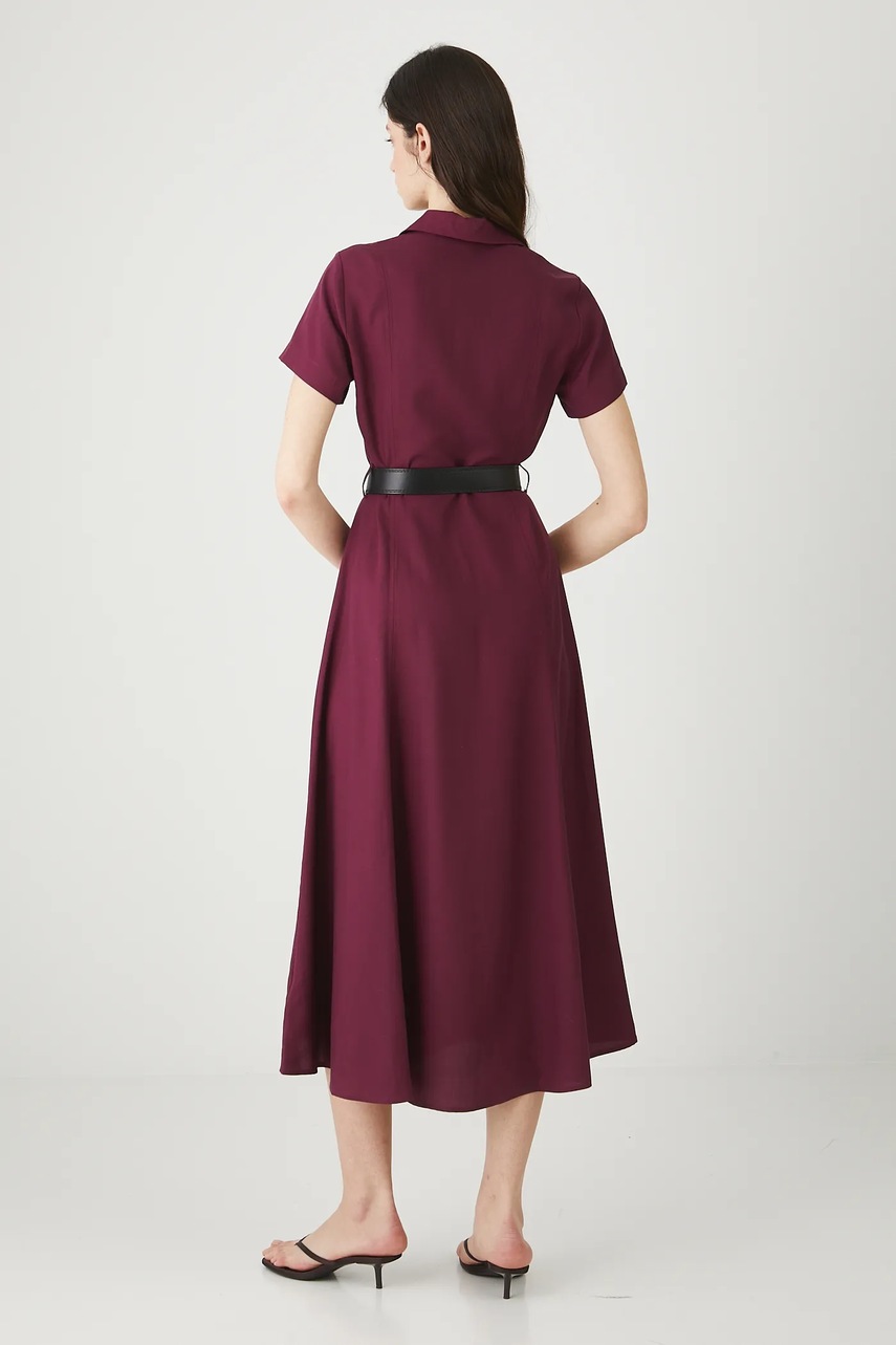 Medicine sukienka z domieszką lnu kolor bordowy midi rozkloszowana