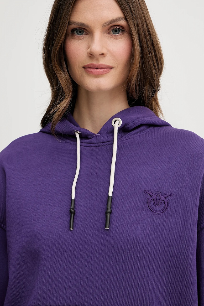 Pinko bluza bawełniana damska kolor fioletowy z kapturem gładka 105507 A2RB