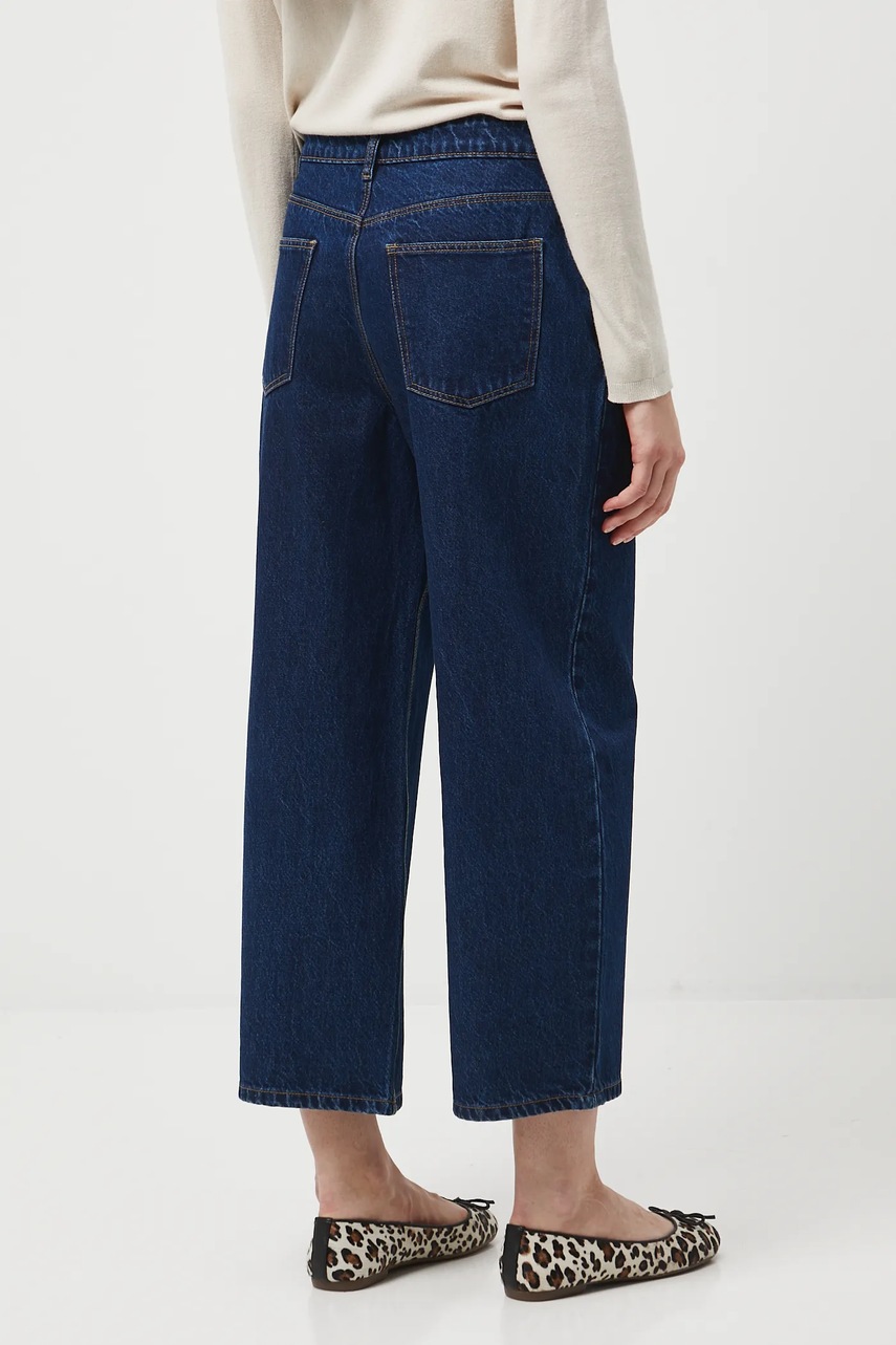 - Fason wide leg - jeansy lekko dopasowane w okolicy bioder z charakterystyczną szeroką nogawką, która stopniowo poszerza się od talii, aż do samego dołu. Krój akcentuje wcięcie w talii, a luźny dół nie krępuje ruchów.