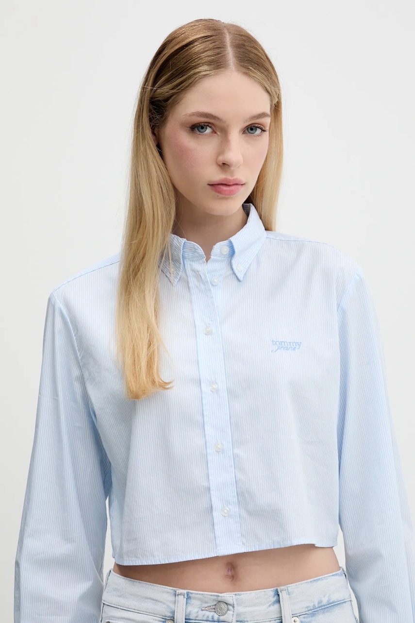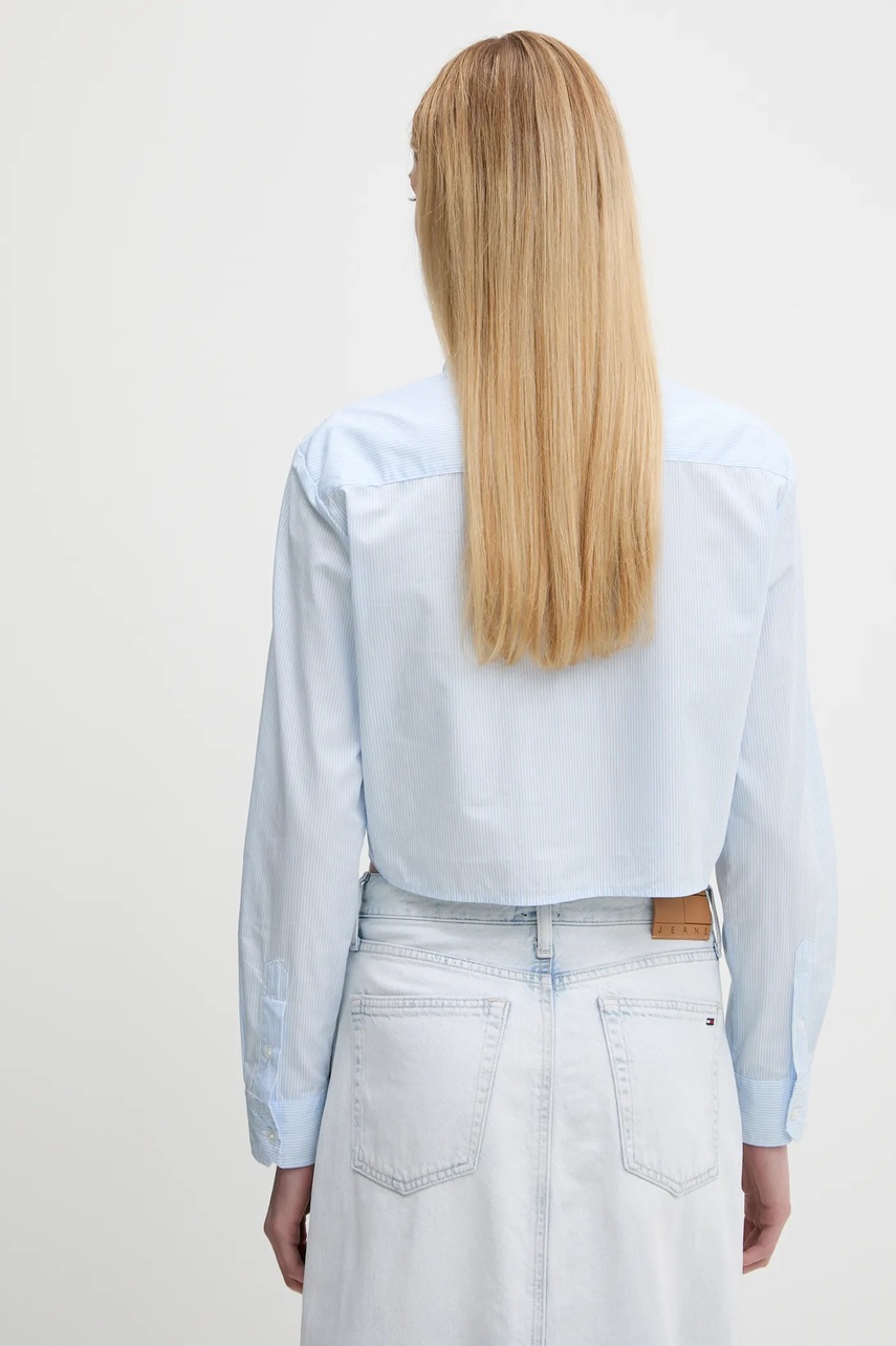 Tommy Jeans koszula bawełniana damska kolor niebieski slim z kołnierzykiem klasycznym DW0DW21400
