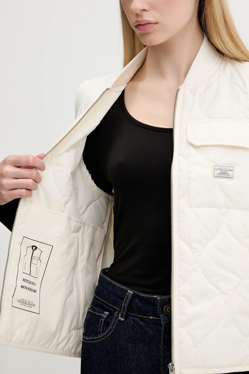 Guess Jeans bezrękawnik kolor beżowy przejściowy W5YN76 WHG02