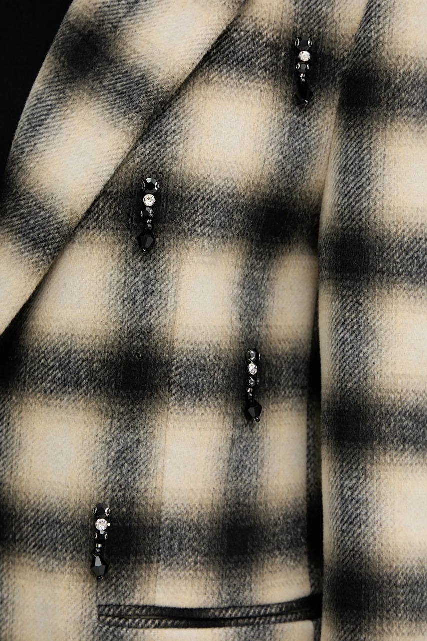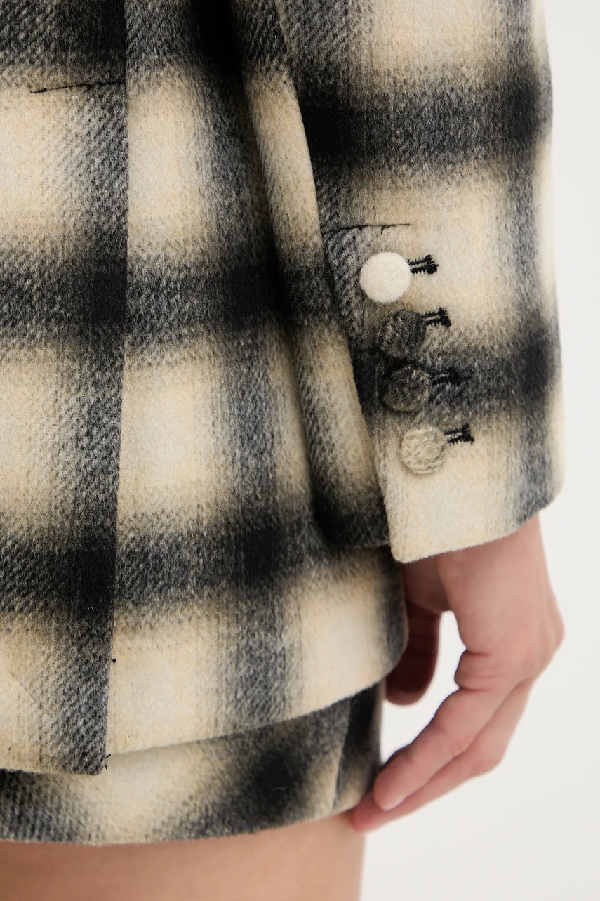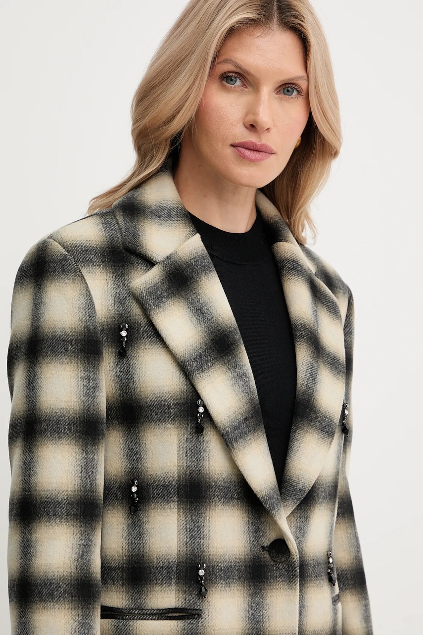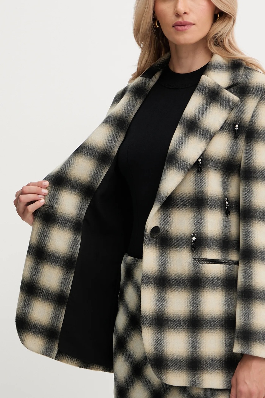 Liu Jo marynarka z domieszką wełny kolor beżowy dwurzędowa wzorzysta MF5193 T079A