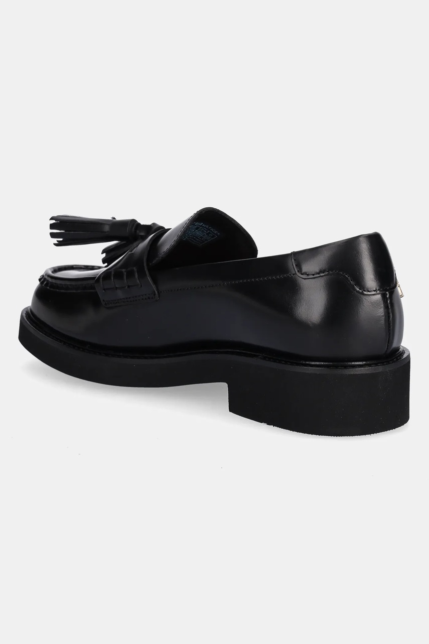Tommy Hilfiger mokasyny skórzane TASSEL SQUARISH TOE LTHR LOAFER damskie kolor czarny na platformie FW0FW08749
