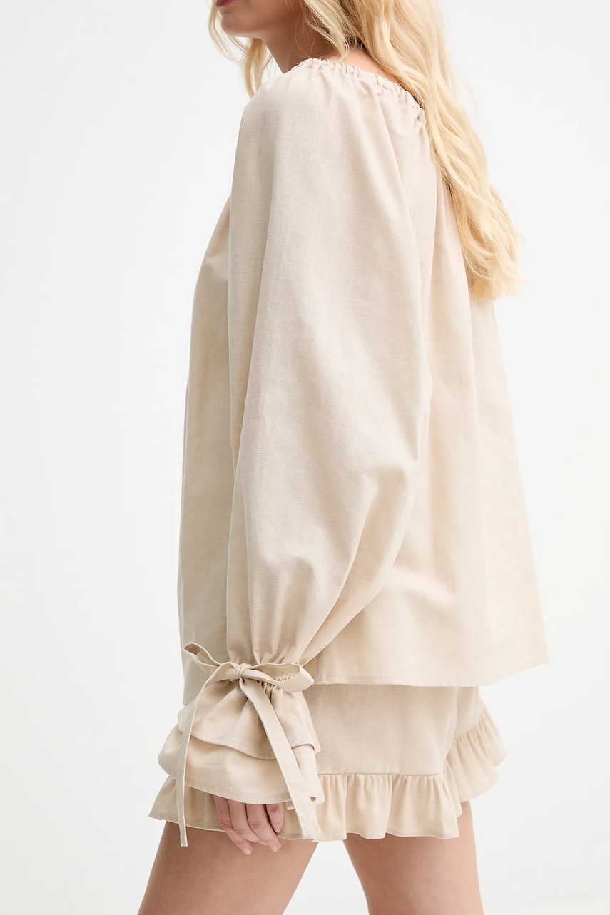 The Sleeper bluzka lniana damska kolor beżowy gładka CHBL06P017N