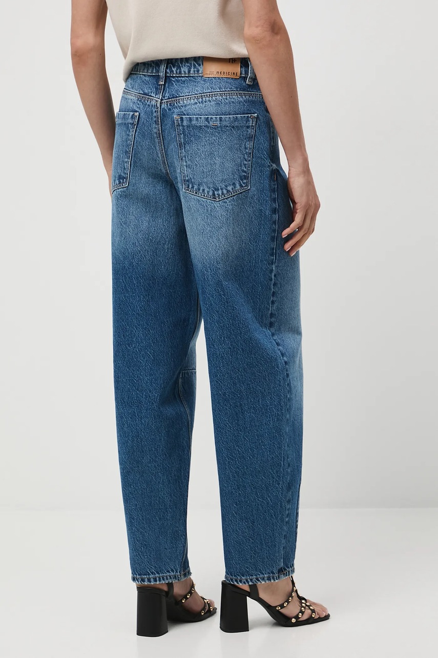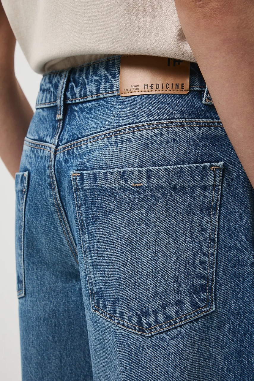 - Fason slouchy - jeansy charakteryzują się oversize?owym krojem oraz szeroką nogawką, która zwęża się przy samej kostce. Ich luźniejsza forma nie krępuje ruchów, gwarantując wygodę i komfort noszenia.