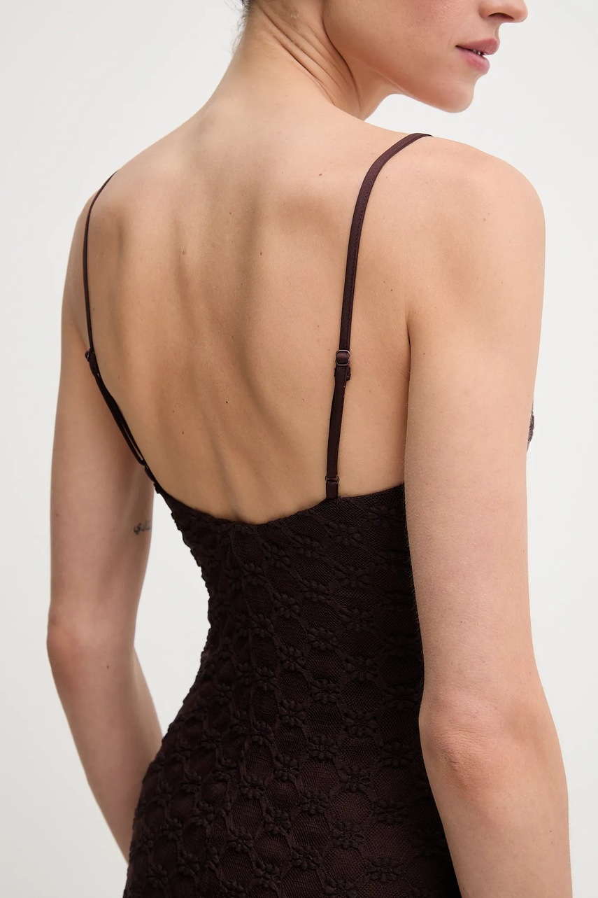 Bardot sukienka ADONI kolor brązowy maxi dopasowana 57998DB1