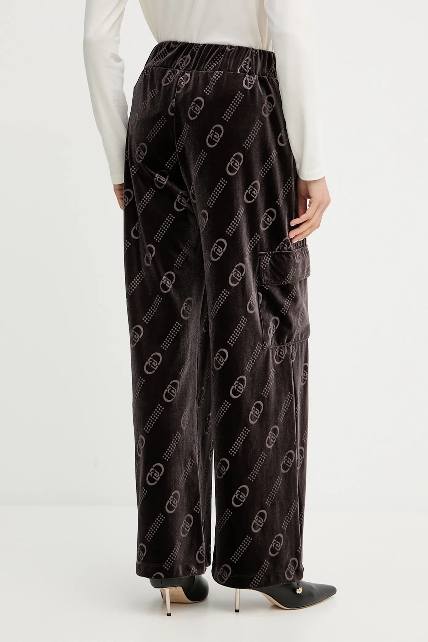 Liu Jo spodnie dresowe welurowe damskie kolor brązowy wzorzyste TF5111.J4955