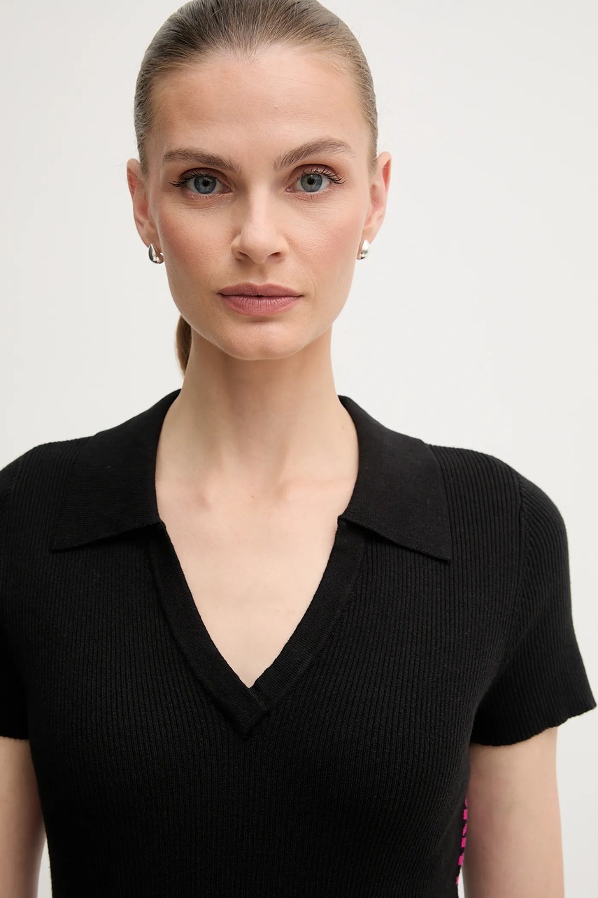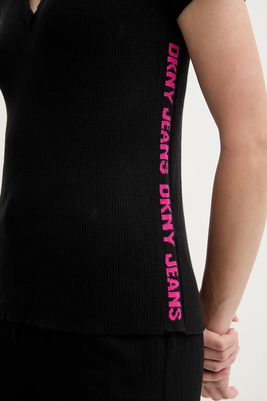 - Model wykonany z dzianiny o strukturze prążków, która jest niezwykle elastyczna i miękka, przez co dobrze dopasowuje się do sylwetki i jest wygodna w użytkowaniu.
