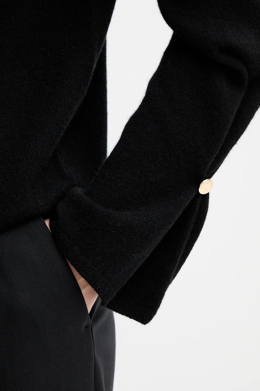 Fracomina sweter wełniany damski kolor czarny lekki z golfem FR25WT7013K47301