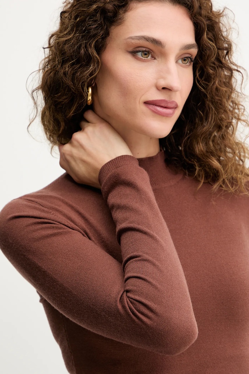 Silvian Heach sweter LOLA damski kolor brązowy z półgolfem GPA25554LU