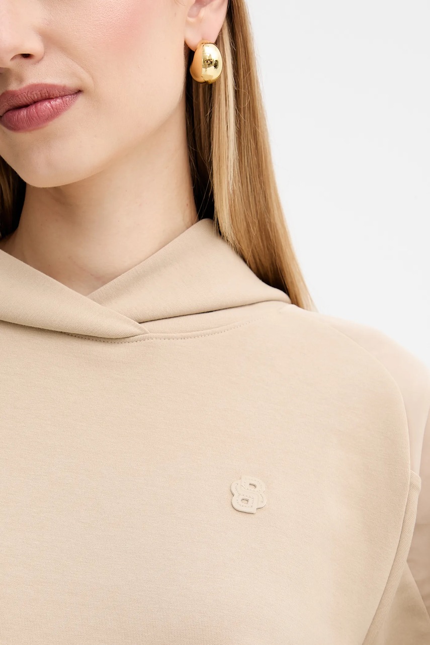 BOSS bluza damska kolor beżowy z kapturem gładka 50553638