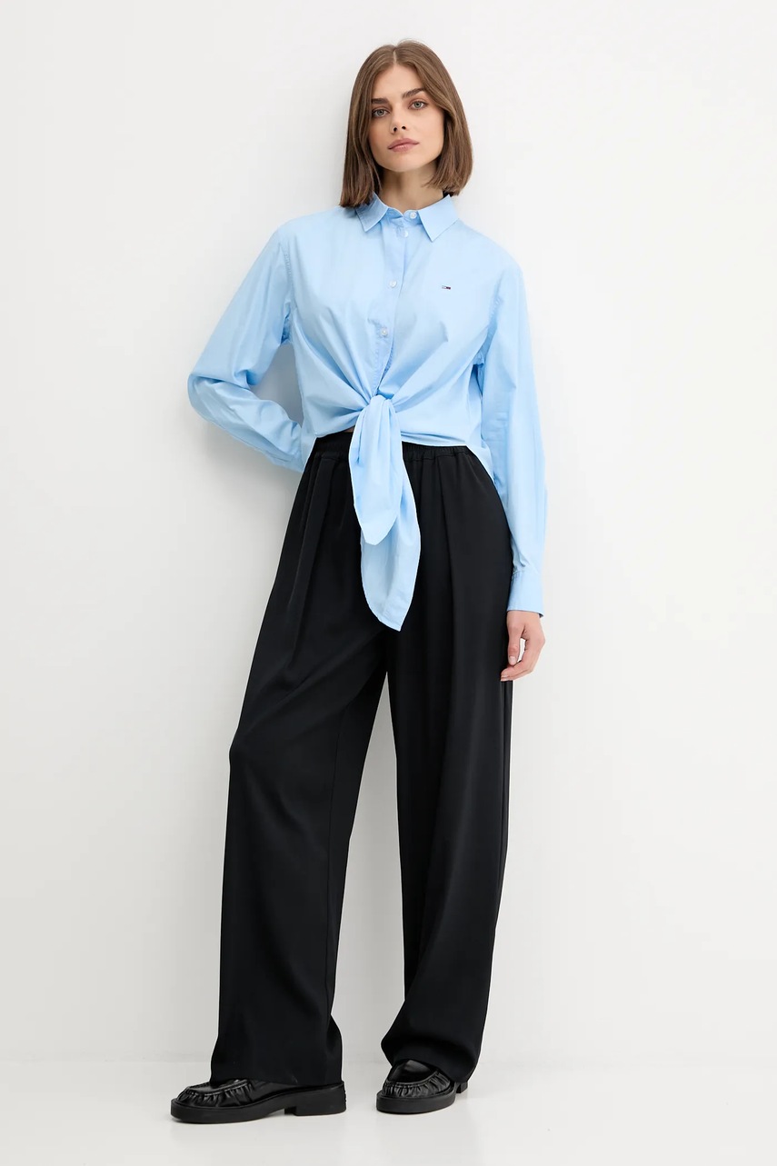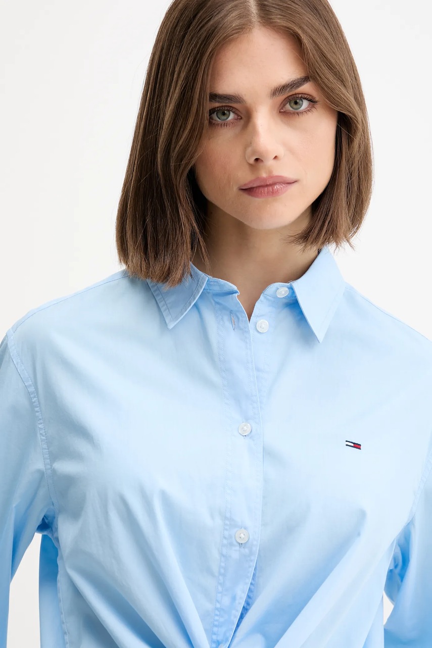 Tommy Jeans koszula bawełniana damska kolor niebieski relaxed z kołnierzykiem klasycznym DW0DW20990