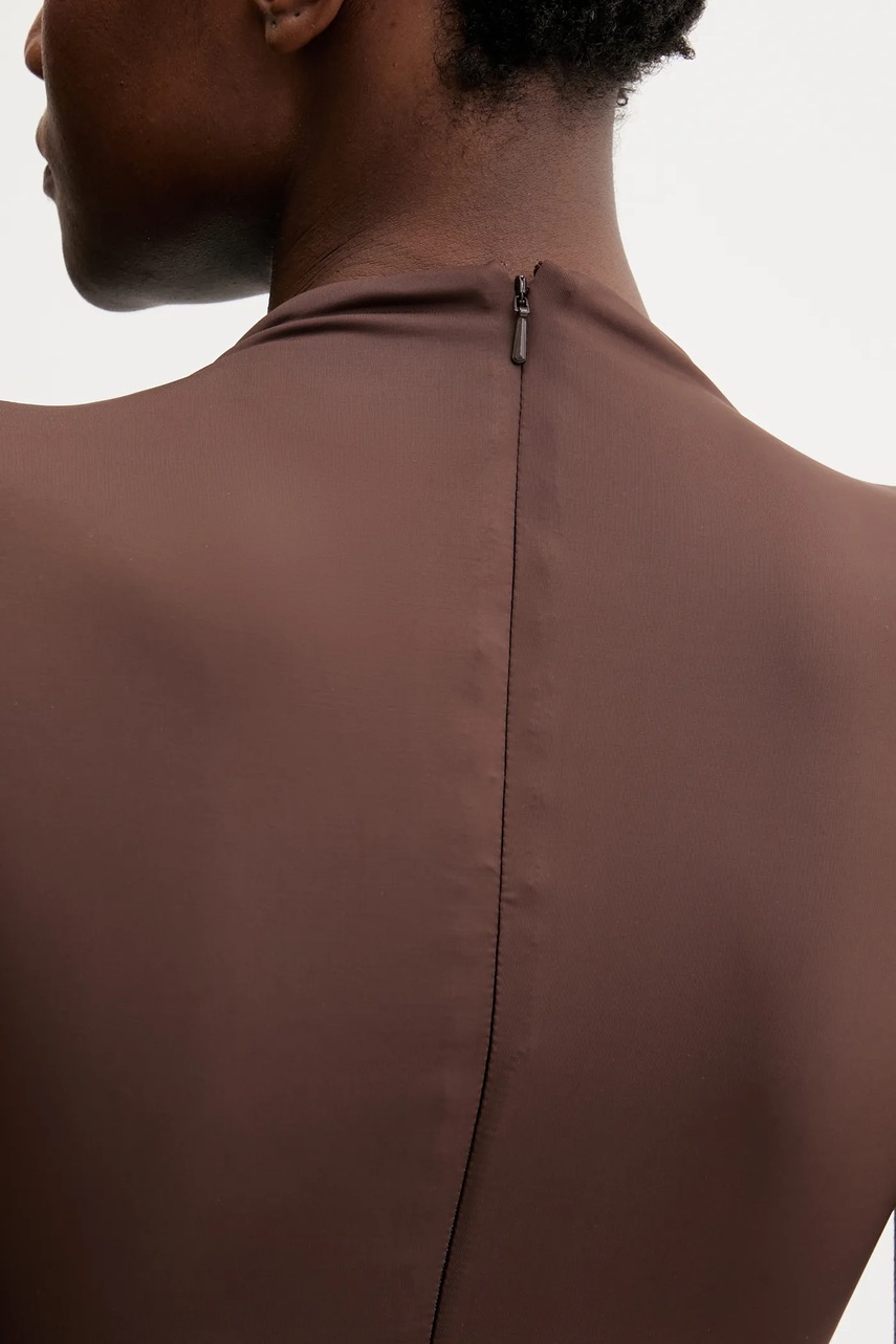 Bardot sukienka kolor brązowy maxi dopasowana 59948DB