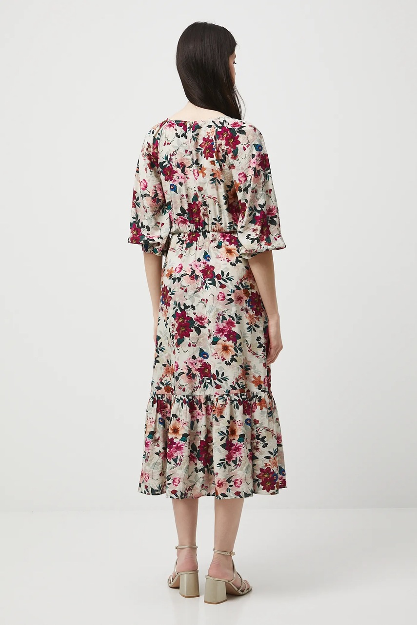 Medicine sukienka kolor beżowy midi rozkloszowana