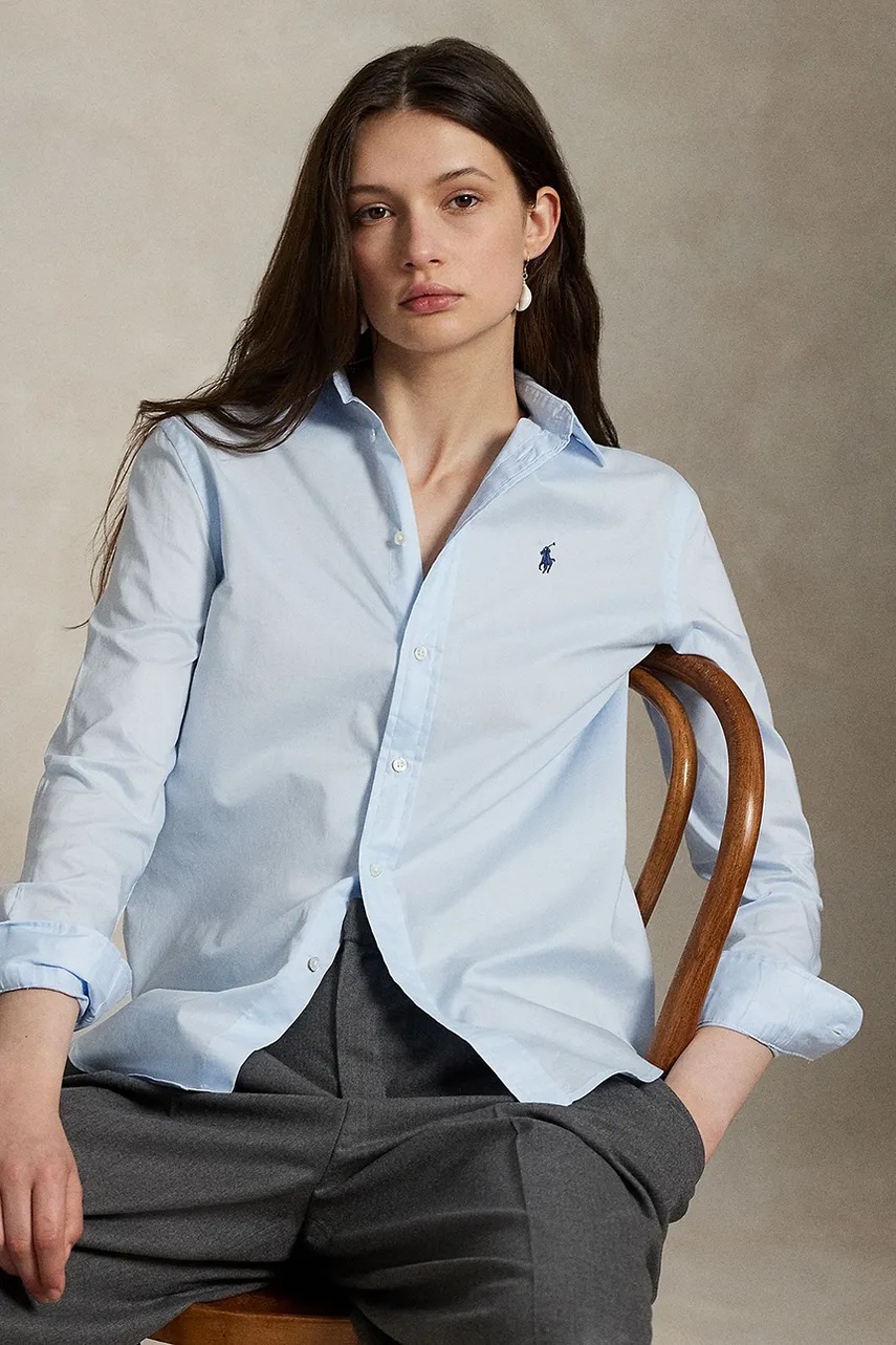 Polo Ralph Lauren koszula bawełniana damska kolor niebieski regular z kołnierzykiem klasycznym 211A92177