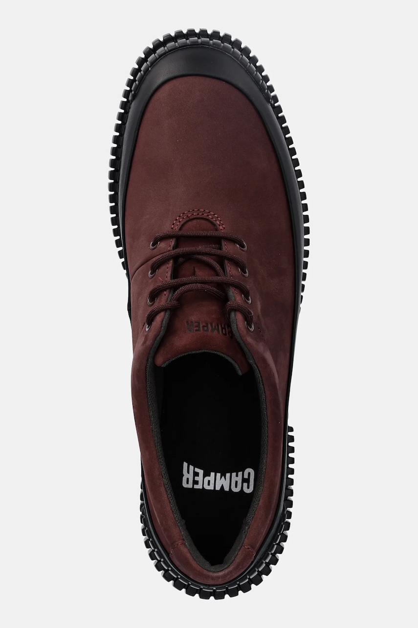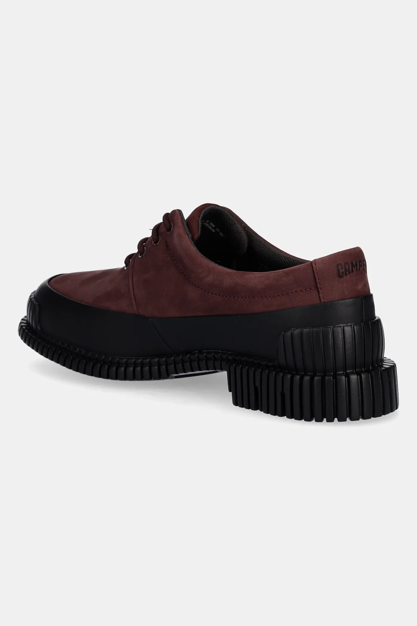Camper półbuty nubukowe Pix damskie kolor bordowy na płaskim obcasie K200687-068