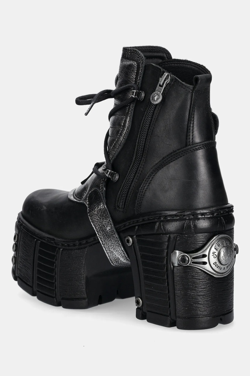 New Rock botki skórzane ITALI NEGRO BOX PLANE damskie kolor czarny na słupku M-TM004-C3