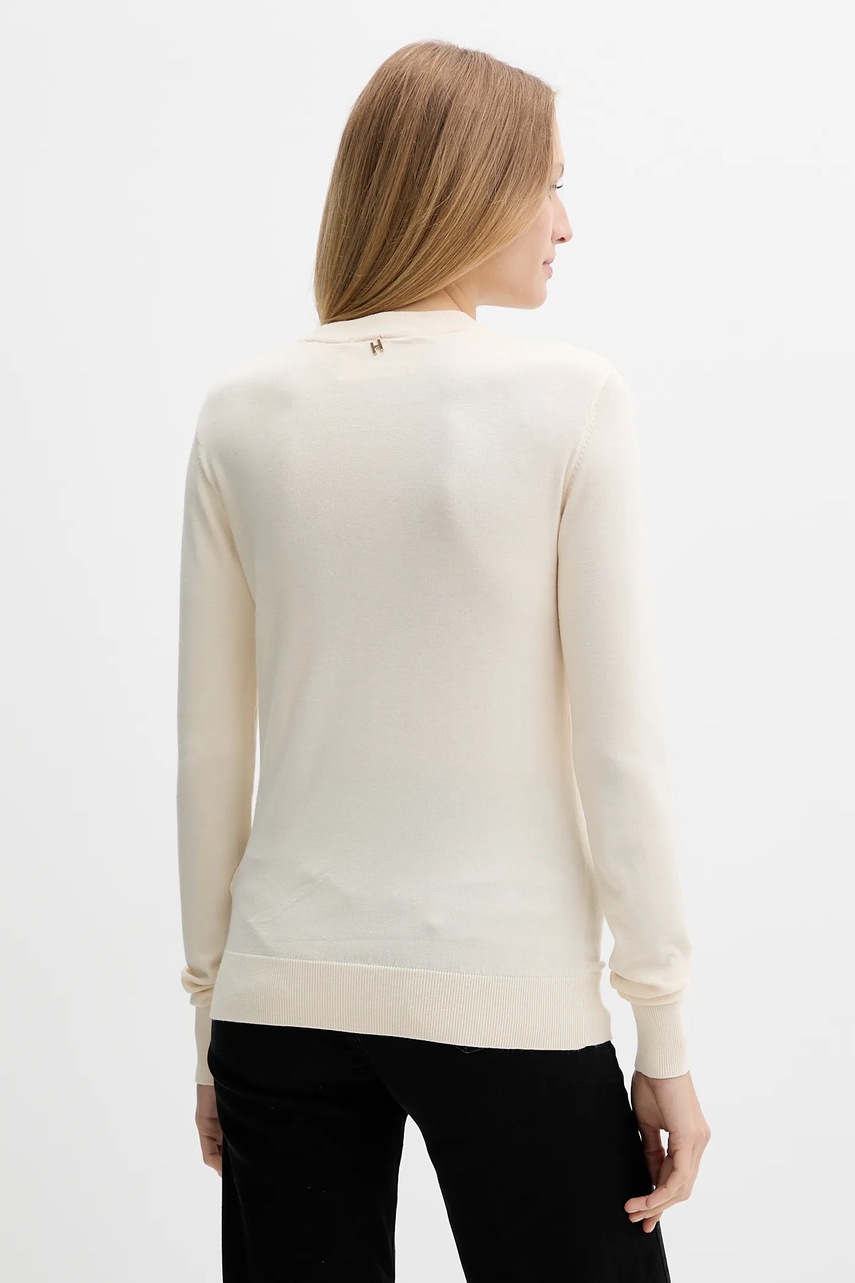 - Sweter w fasonie regular zapewnia wygodę i uniwersalny wygląd. Delikatnie dopasowuje się do sylwetki, ale nie podkreśla jej nadmiernie. Klasyczny i prosty, sprawdzi się zarówno w eleganckich, jak i casualowych stylizacjach.