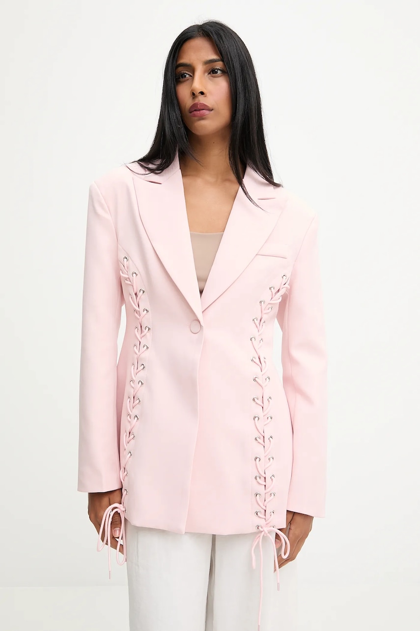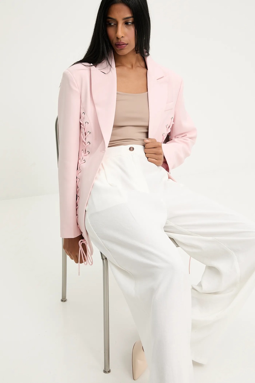 Answear Lab marynarka kolor różowy jednorzędowa gładka