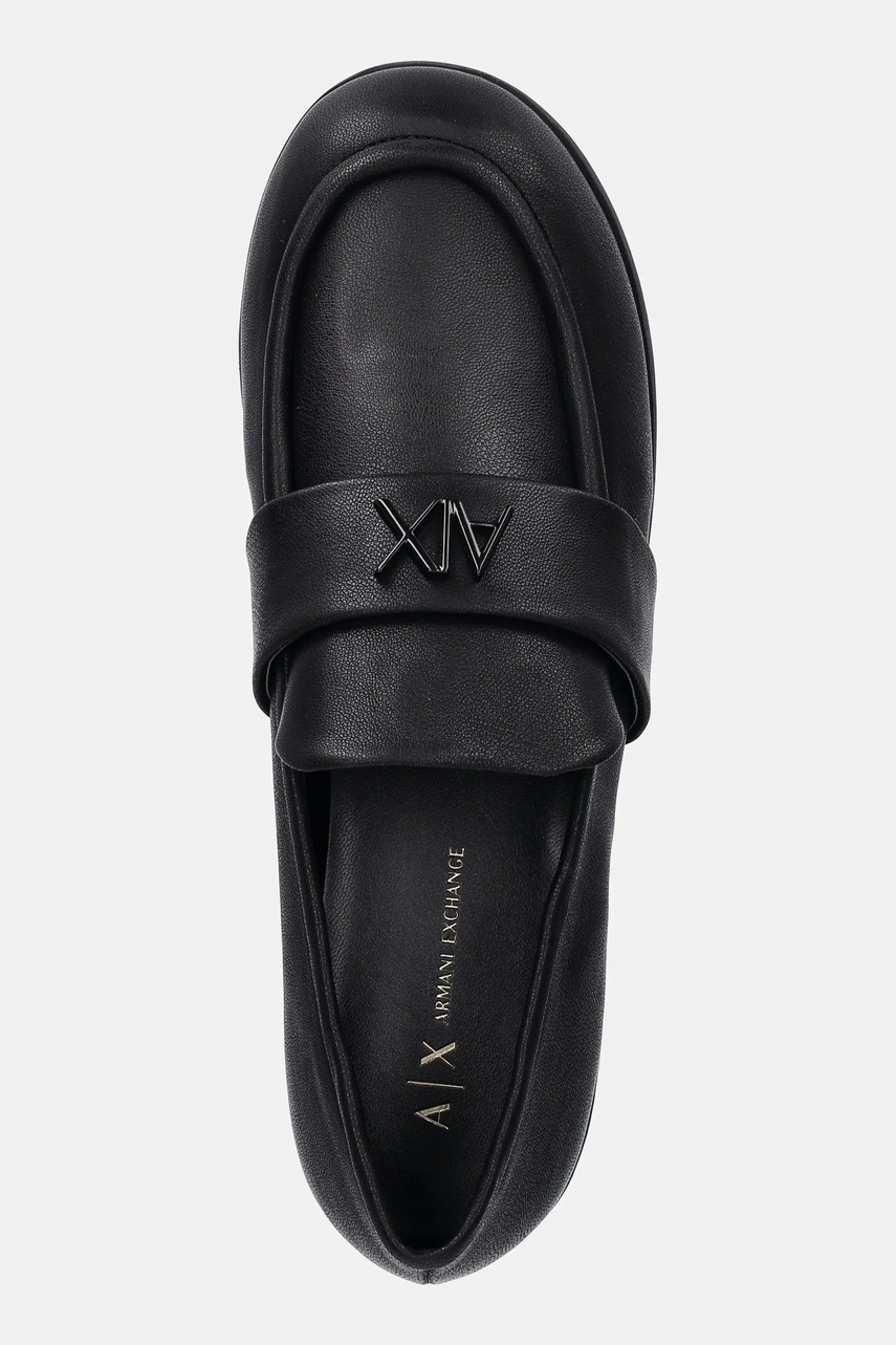 Armani Exchange mokasyny damskie kolor czarny na płaskim obcasie XW001635 AF13876 UC001