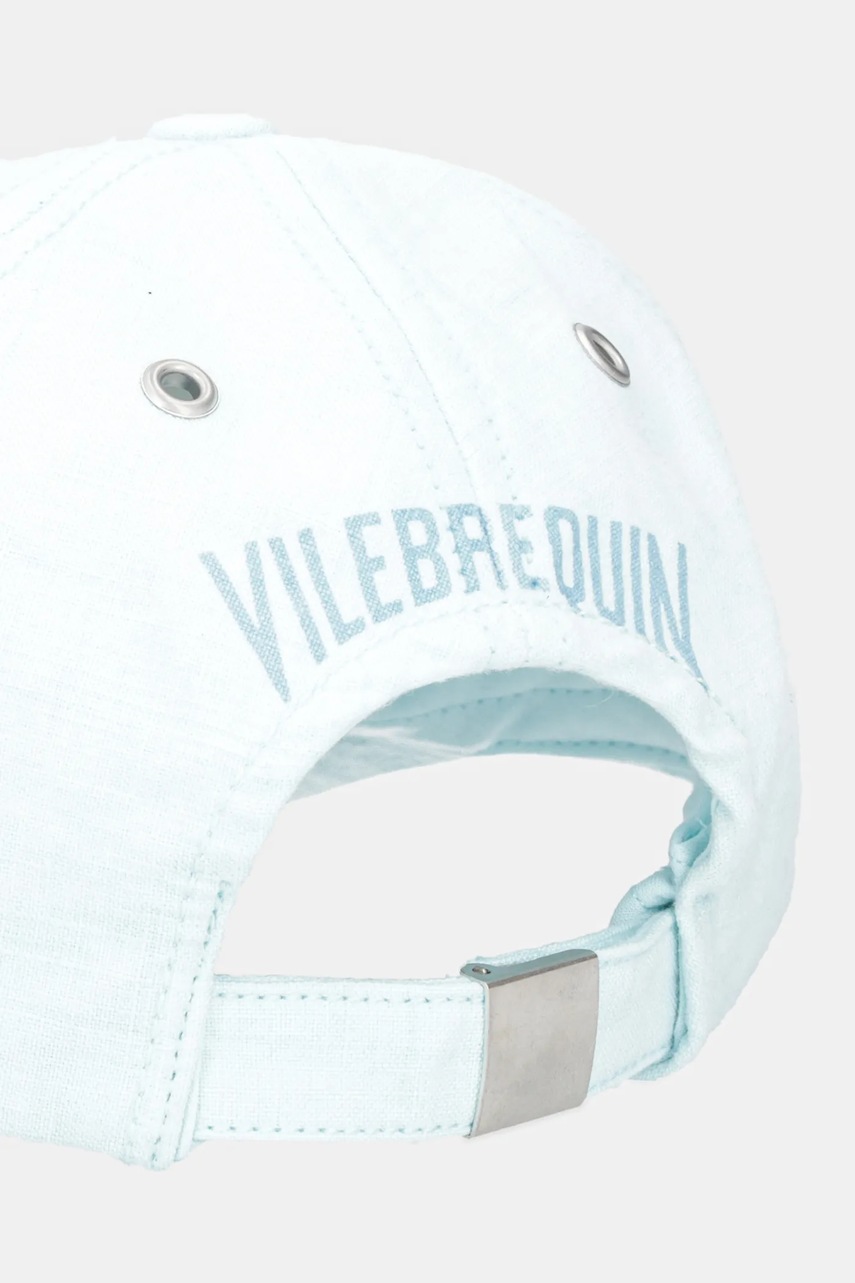 Vilebrequin czapka z daszkiem lniana CAMO kolor niebieski OMAC1304