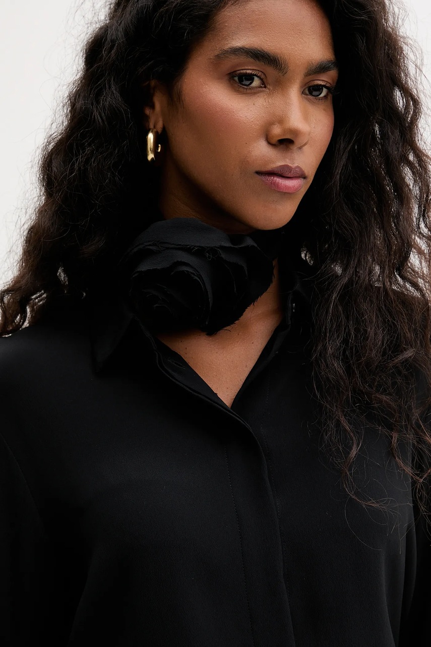 Marella koszula z jedwabiem kolor czarny relaxed z kołnierzykiem klasycznym 2523116071200