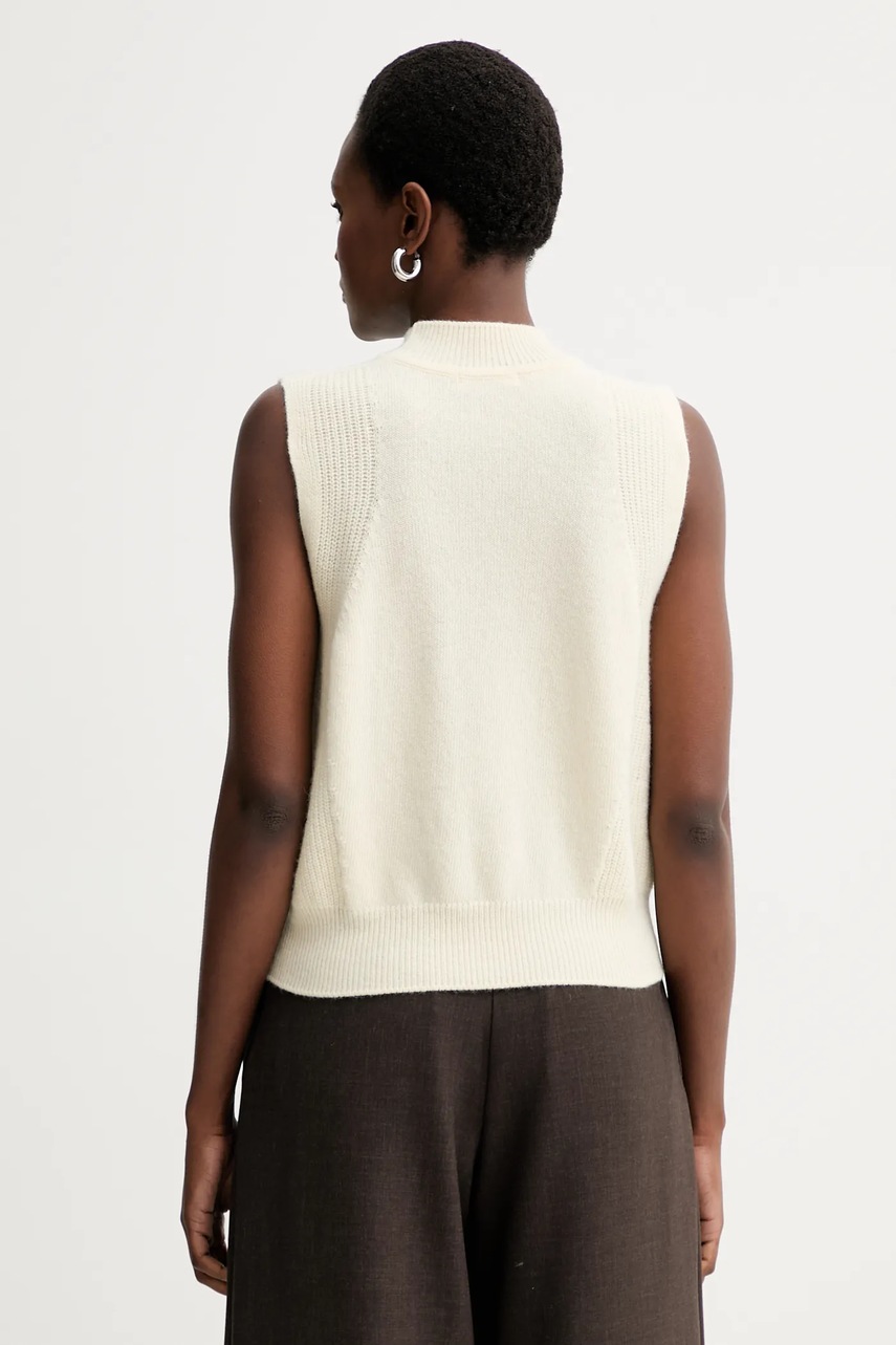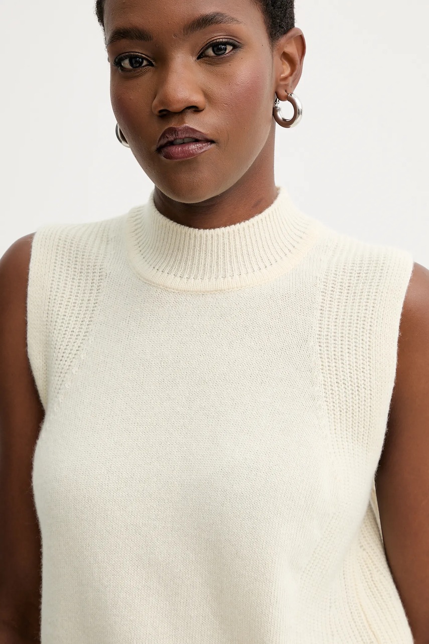 Sessun kamizelka wełniana damski kolor beżowy lekki z półgolfem 25109018